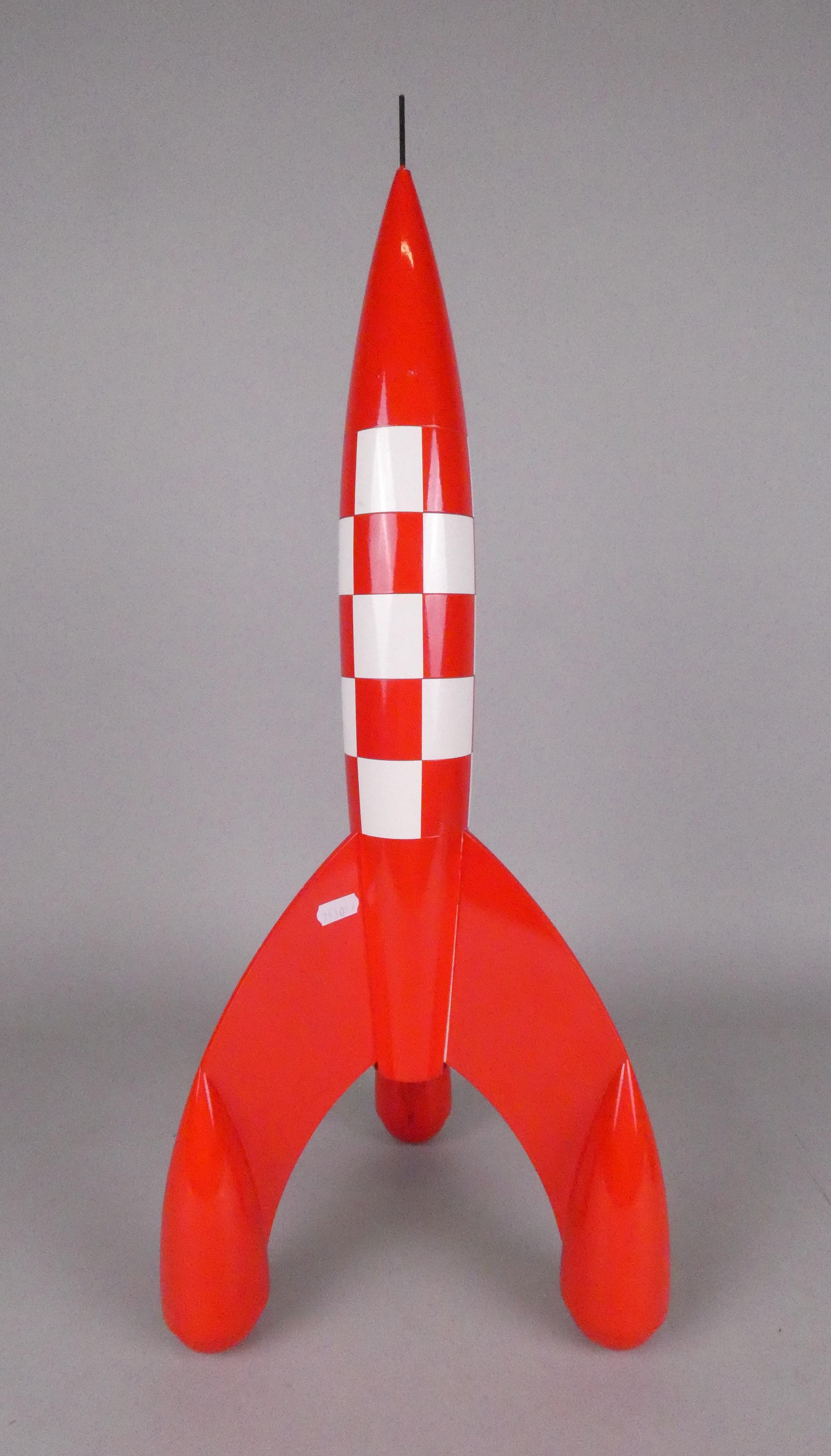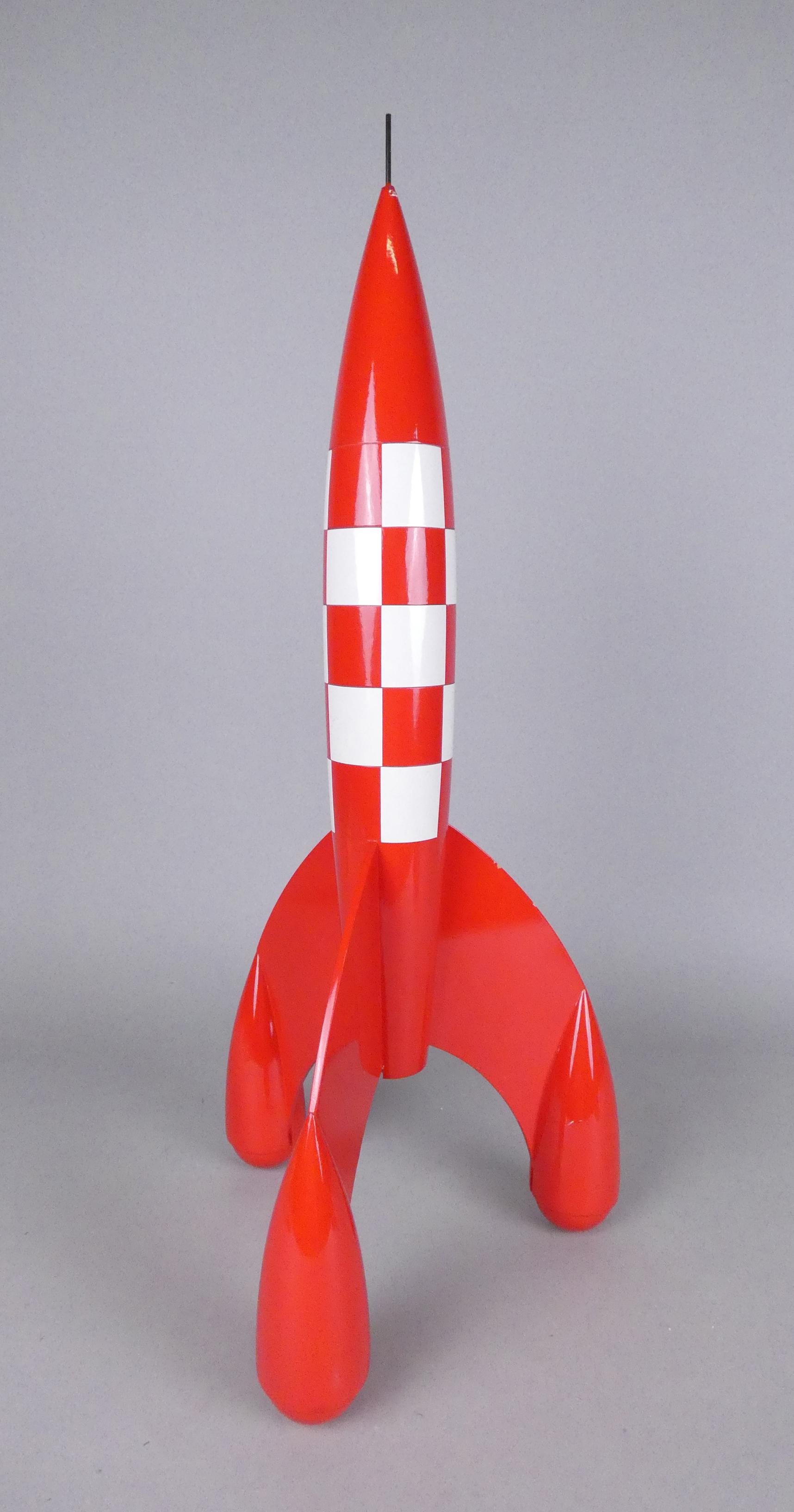 BD: Hergé Fusée Tintin en bois (Chocs, pts ecl, décollement) -Objectif Lune- attribué à *AROUTCHEFF M.* (Michel) (1946, ) H:66cm