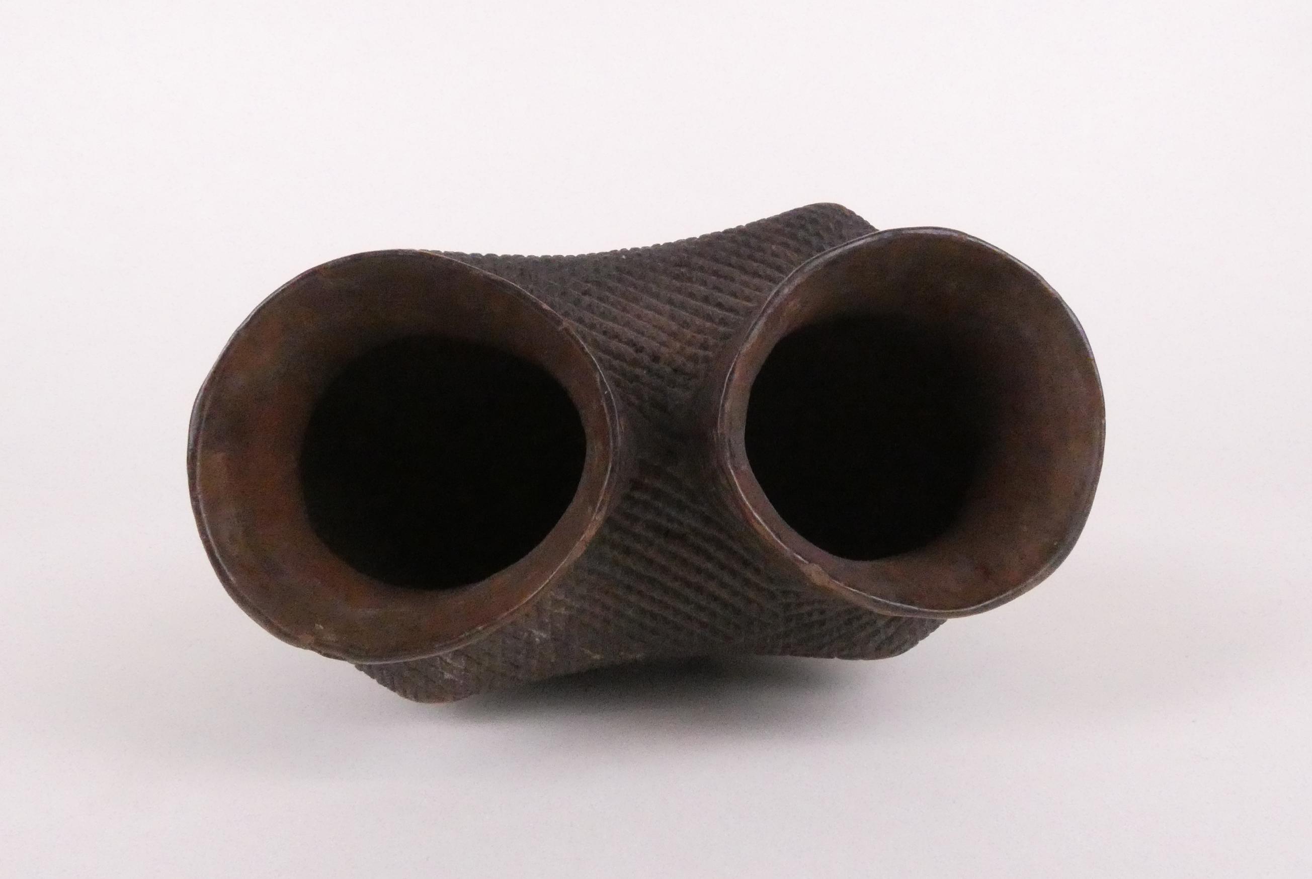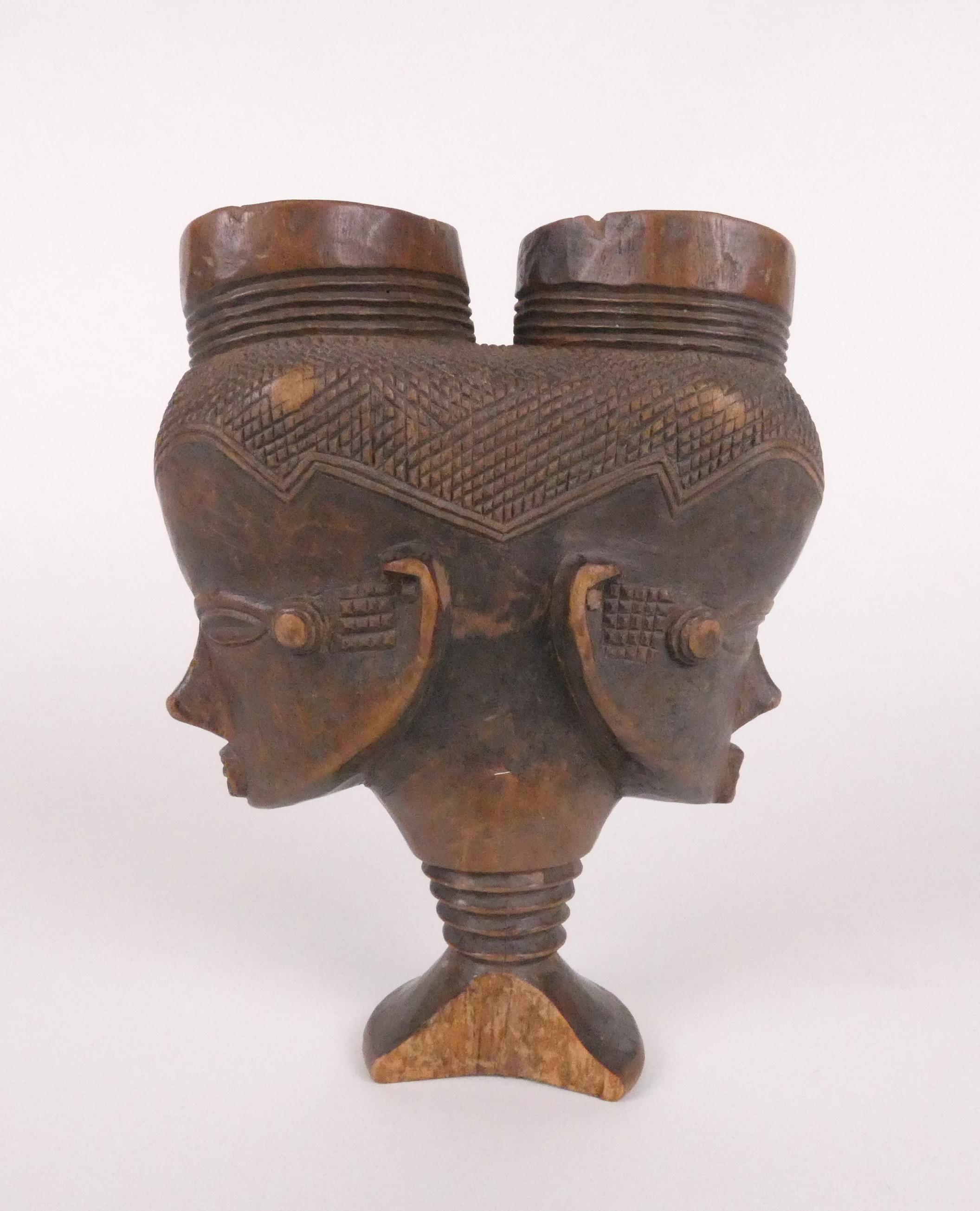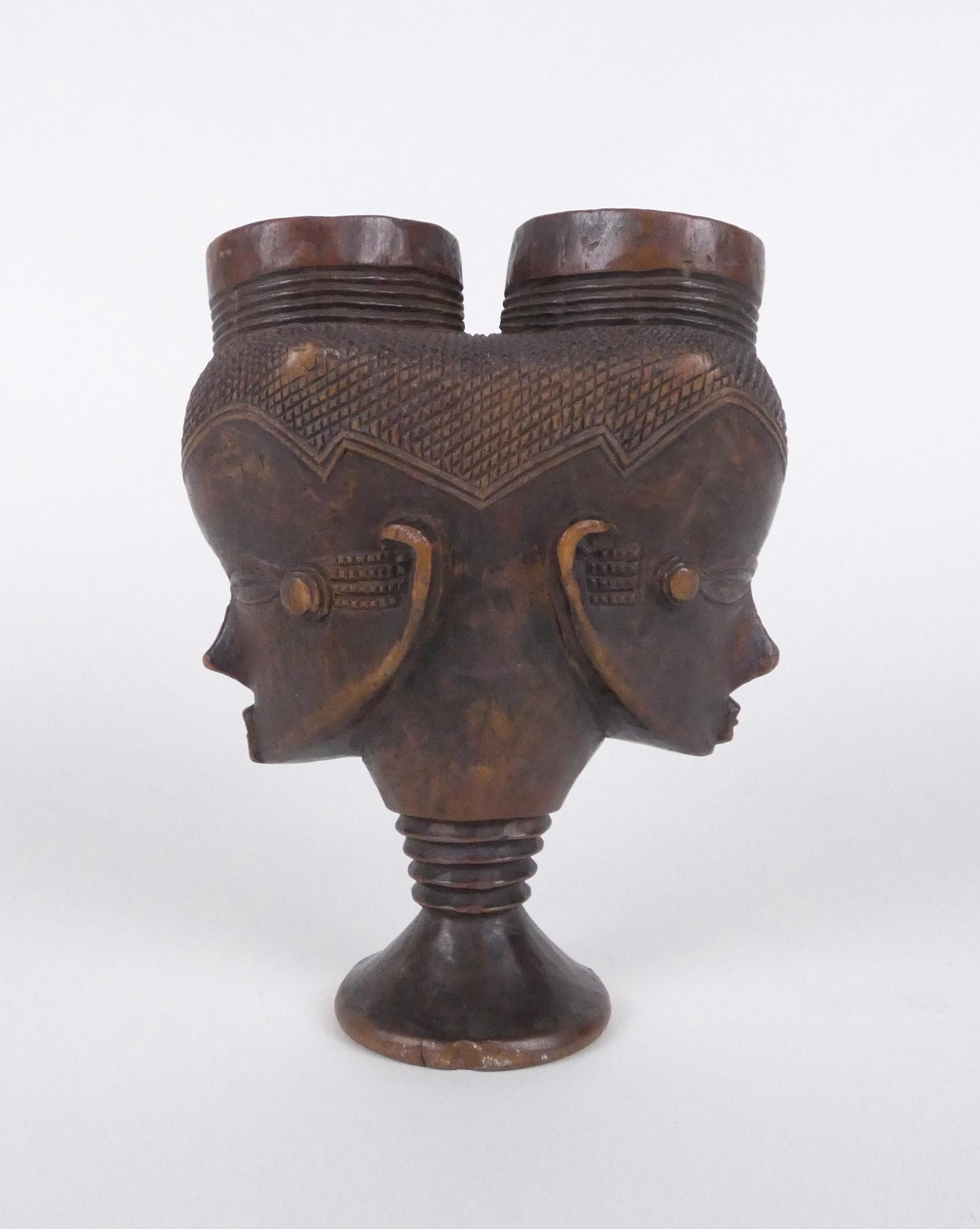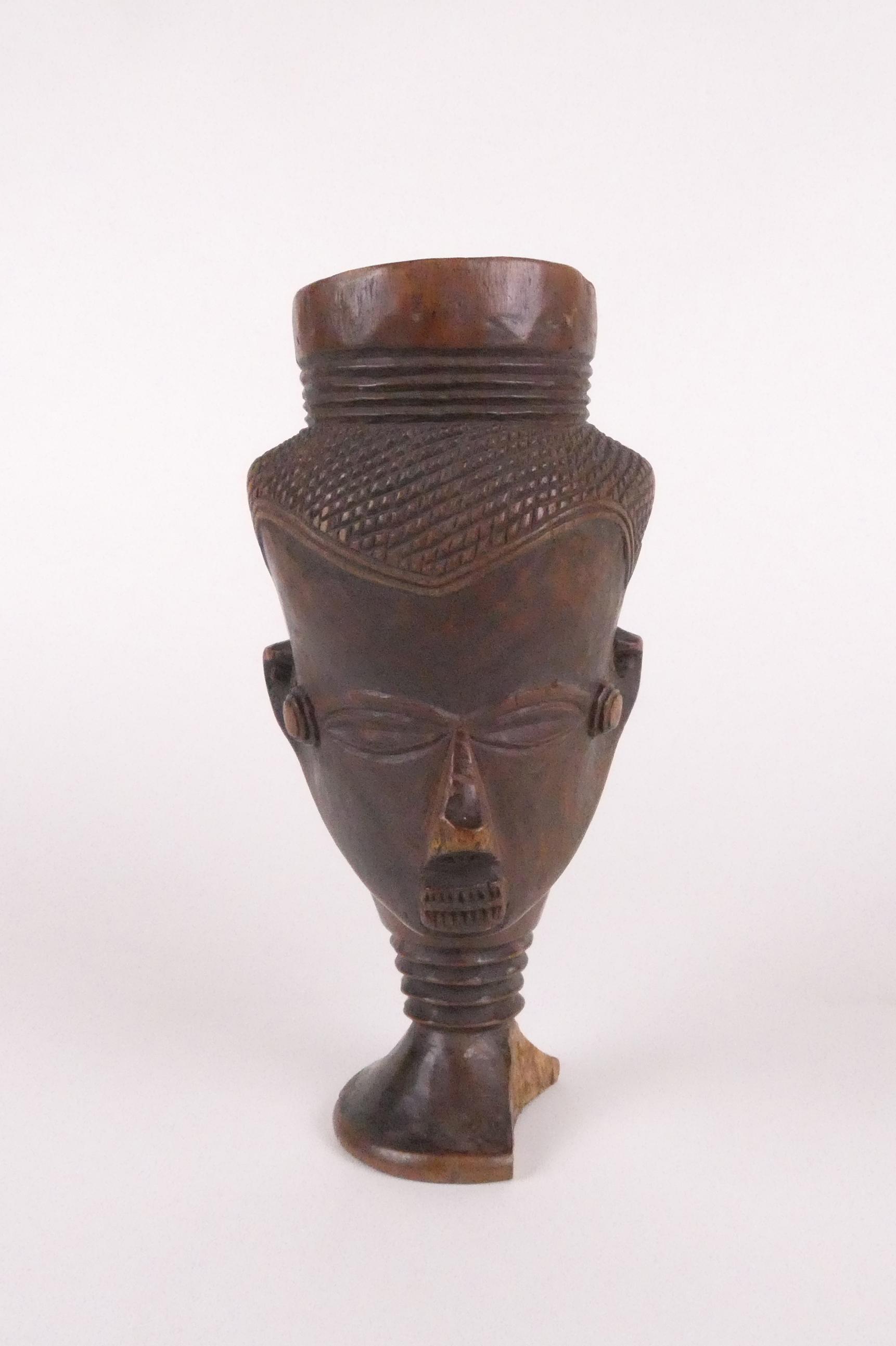 Africain: Coupe Kuba Congo (acc) en bois sculpté H:19cm
