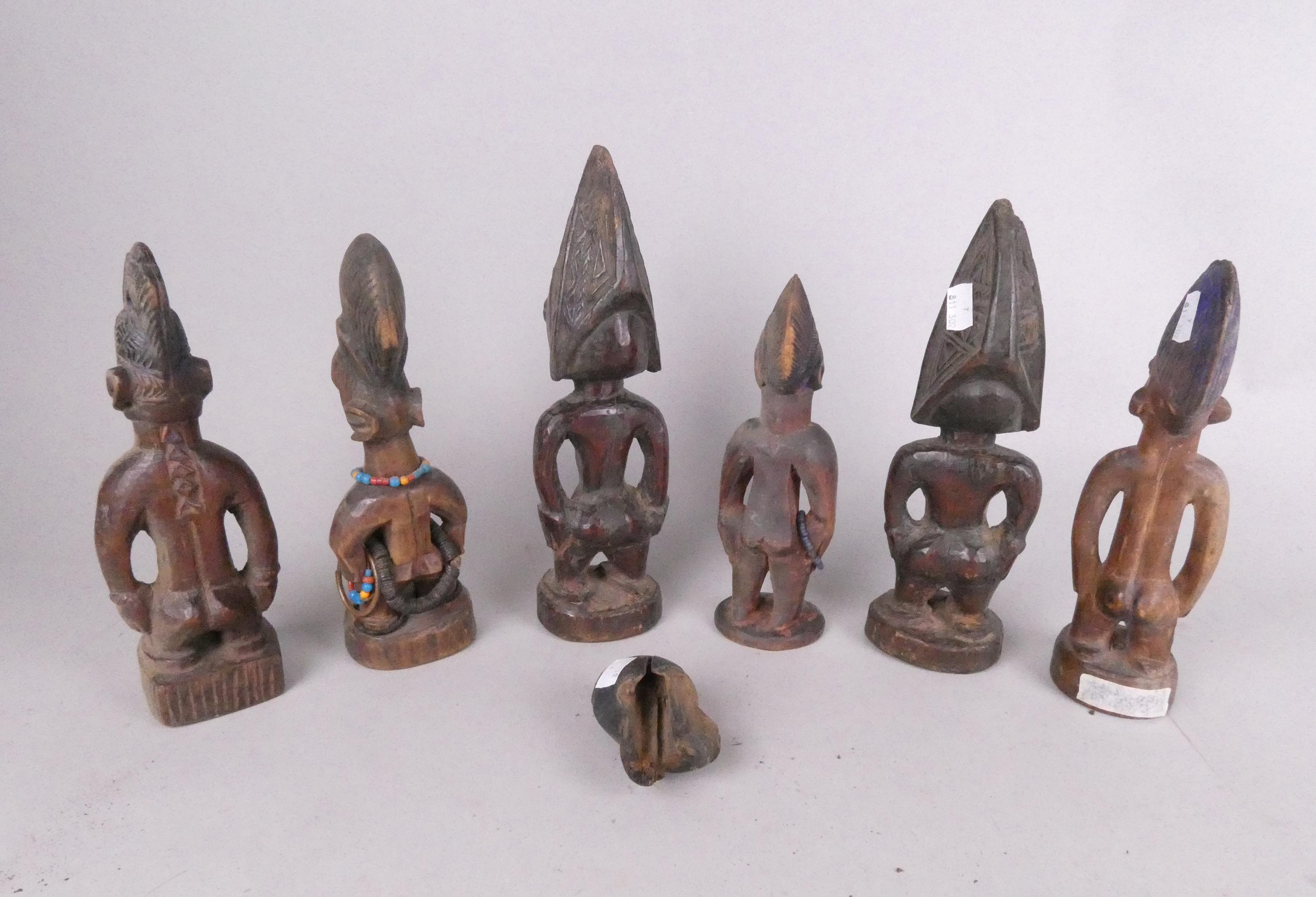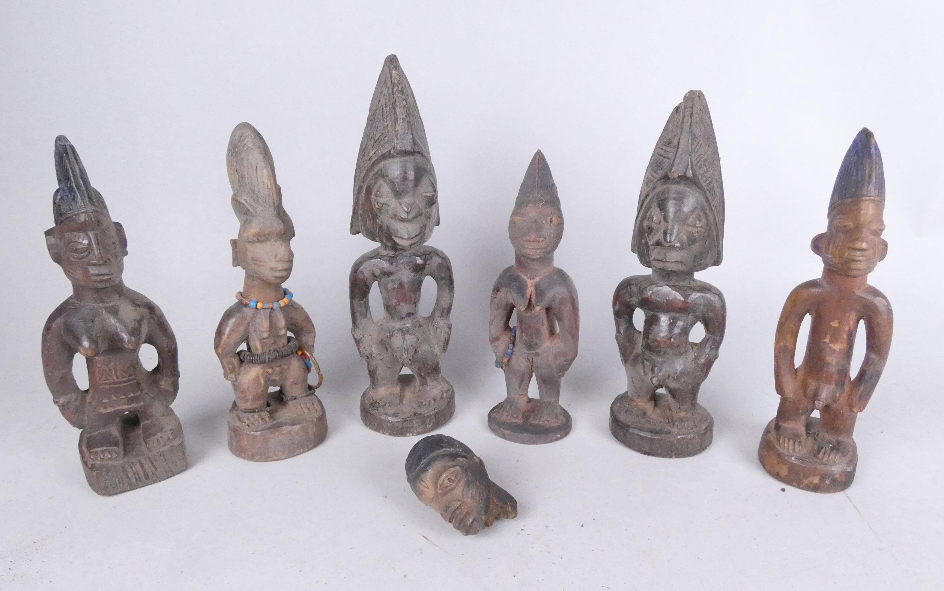 Africain: Statuettes Ibidji, Yoruba NIGERIA (7pcs) H(plus grande): 32cm
