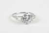 Bijou : Bague en platine sertie d'un diamant taille brillant couleur F - G pureté VVS symétrie très bonne épaulé de diamants baguette