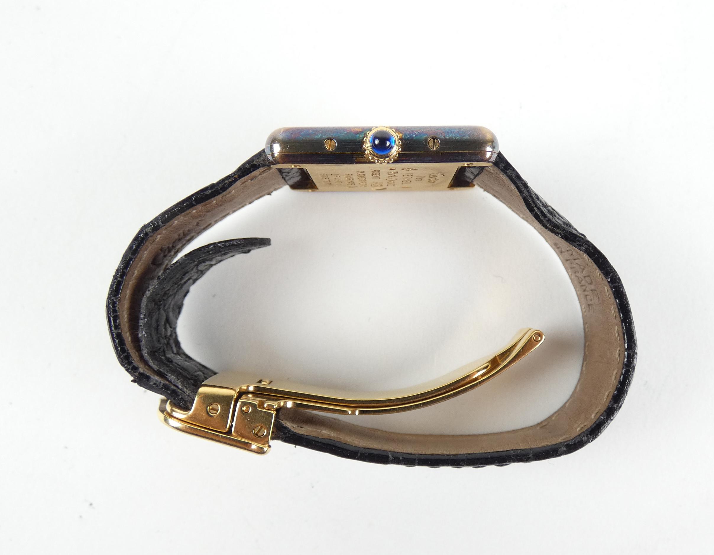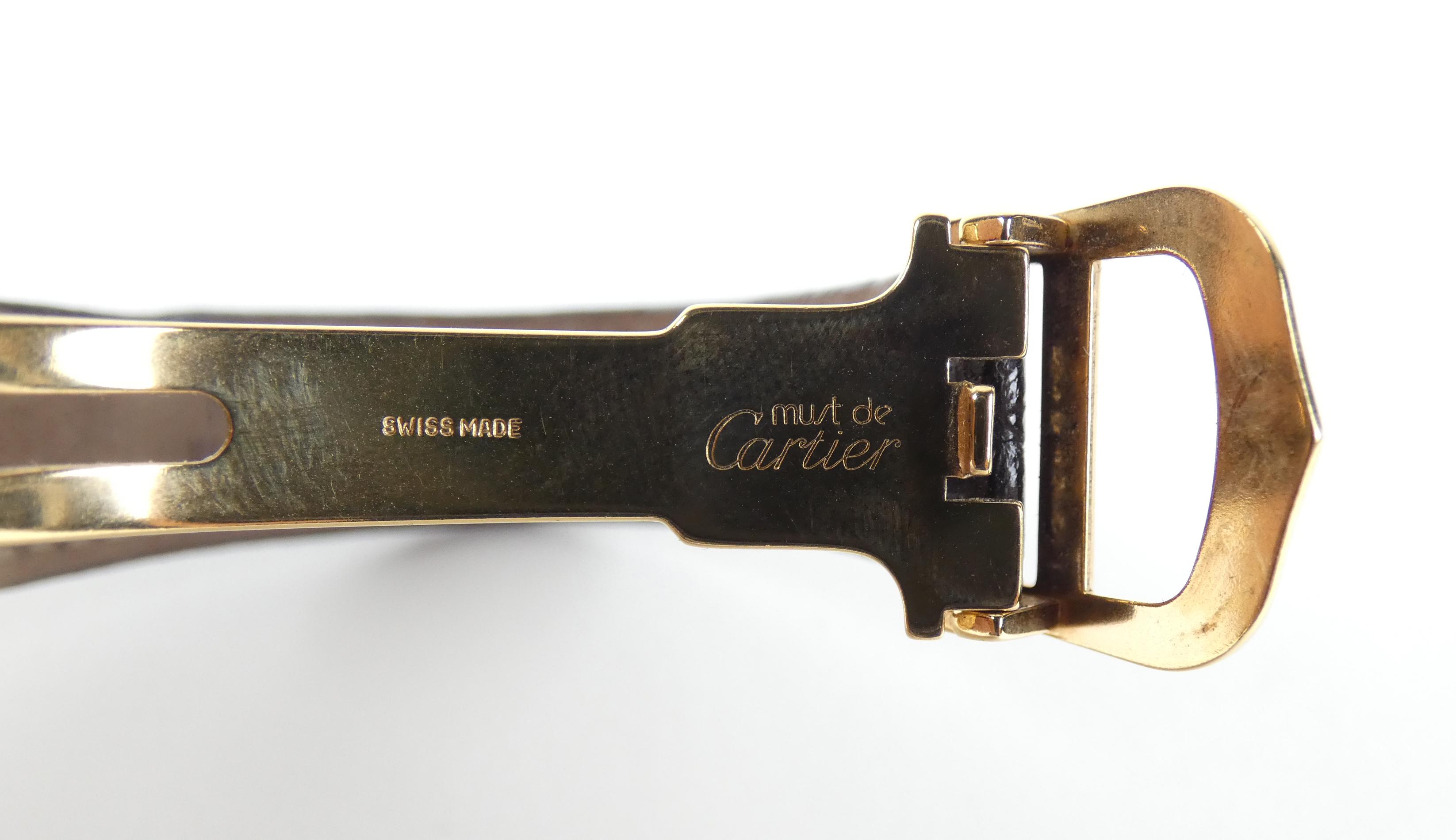 Bijou : Montre de Dame MUST de CARTIER modèle Tank en vermeil cadran Trinity mvt à quartz (en état) bracelet et boucle métal doré Cartier