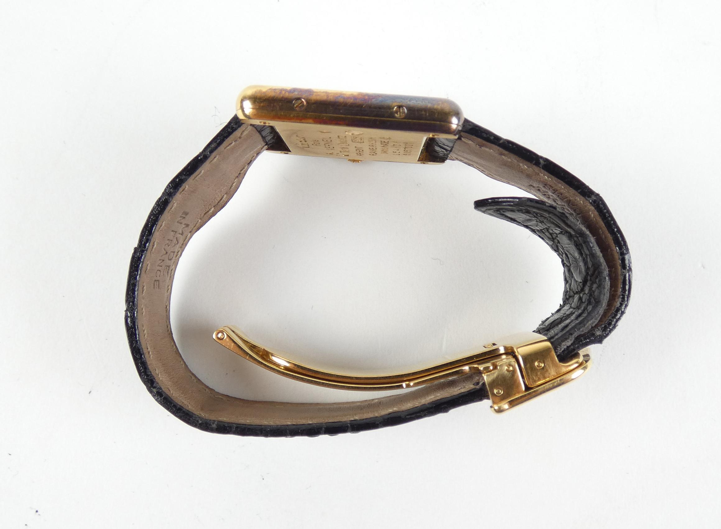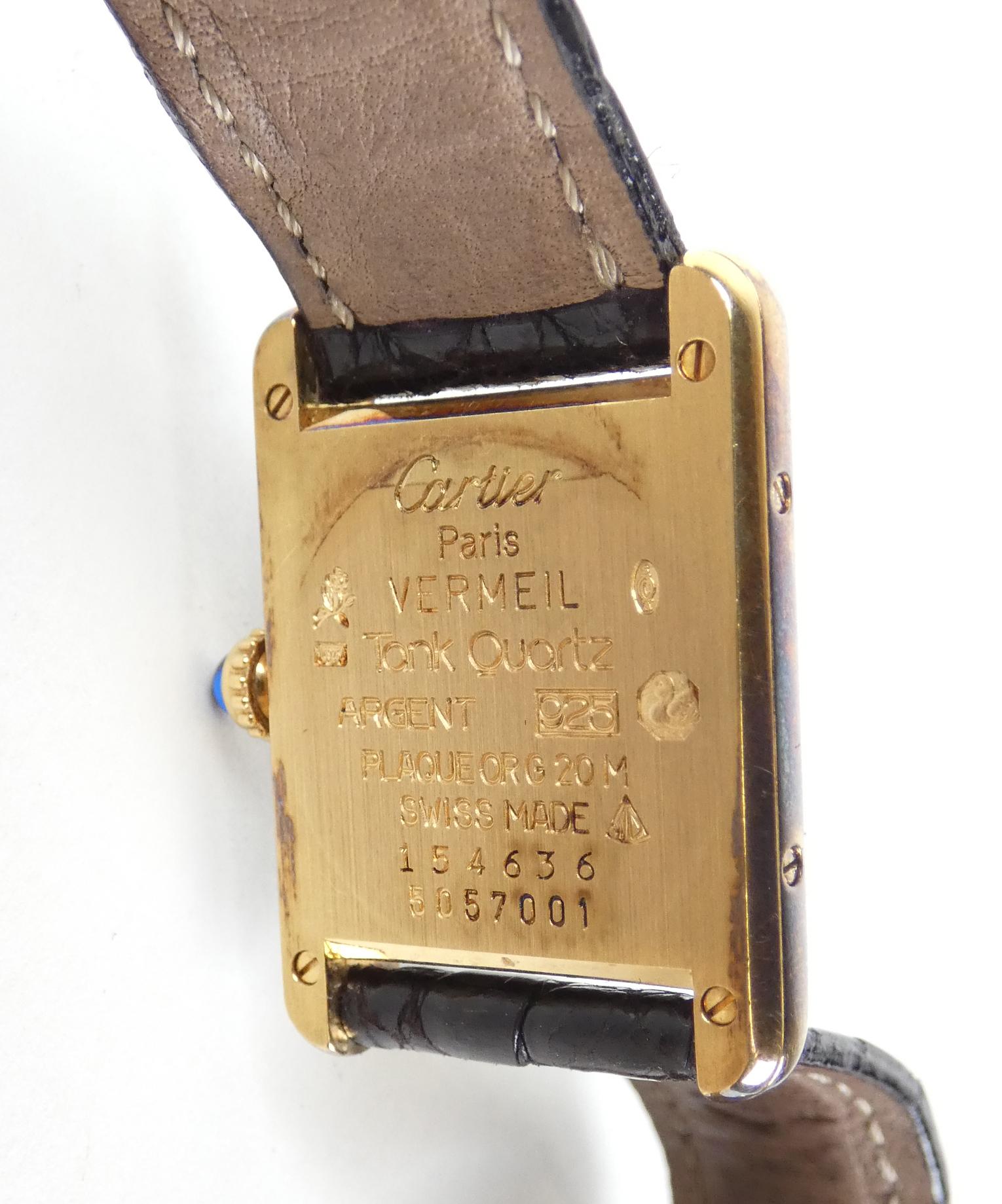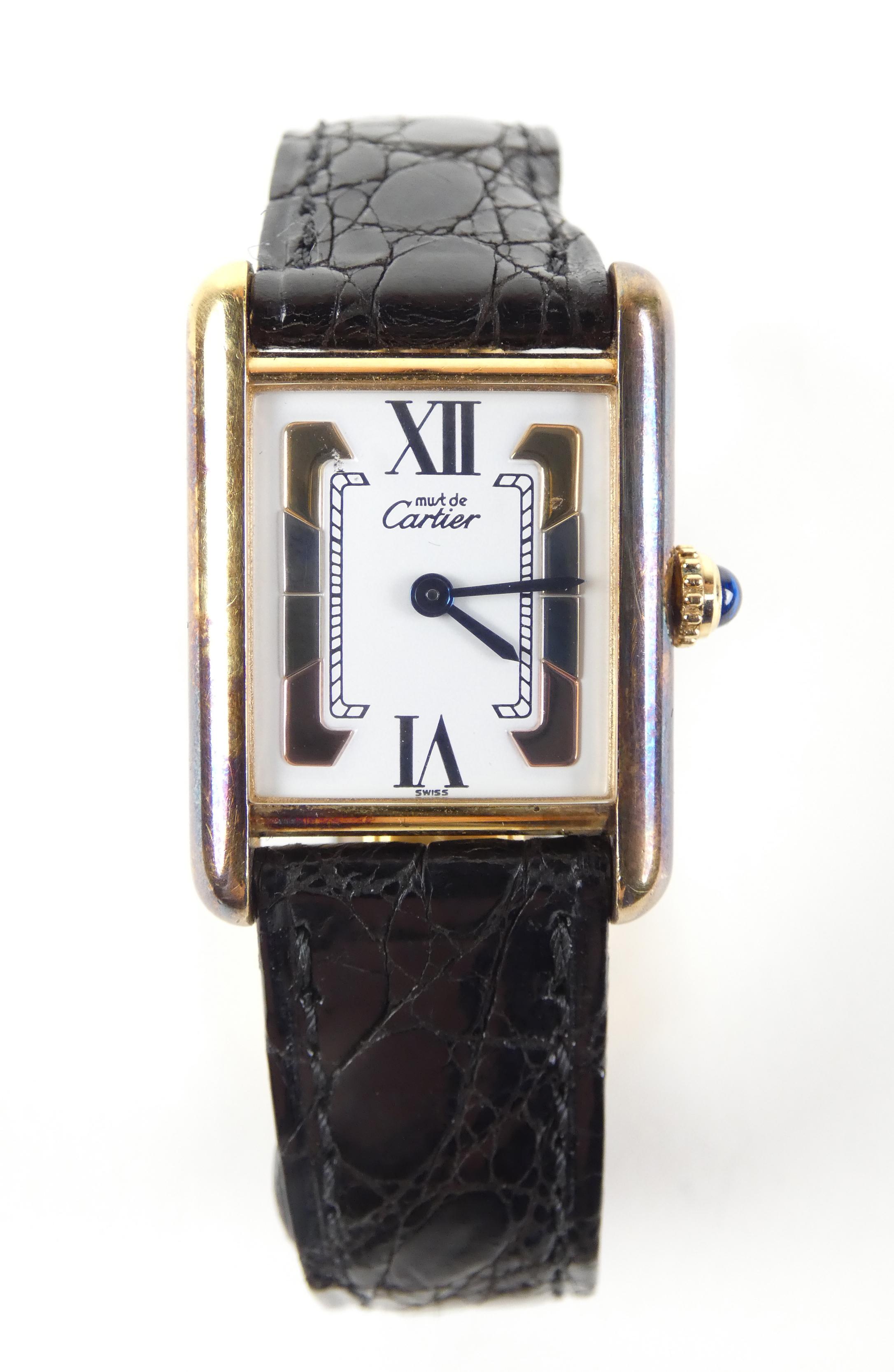 Bijou: Montre de Dame MUST de CARTIER modèle Tank en vermeil cadran Trinity mvt à quartz (en état) 21x28mm bracelet et boucle métal doré Cartier