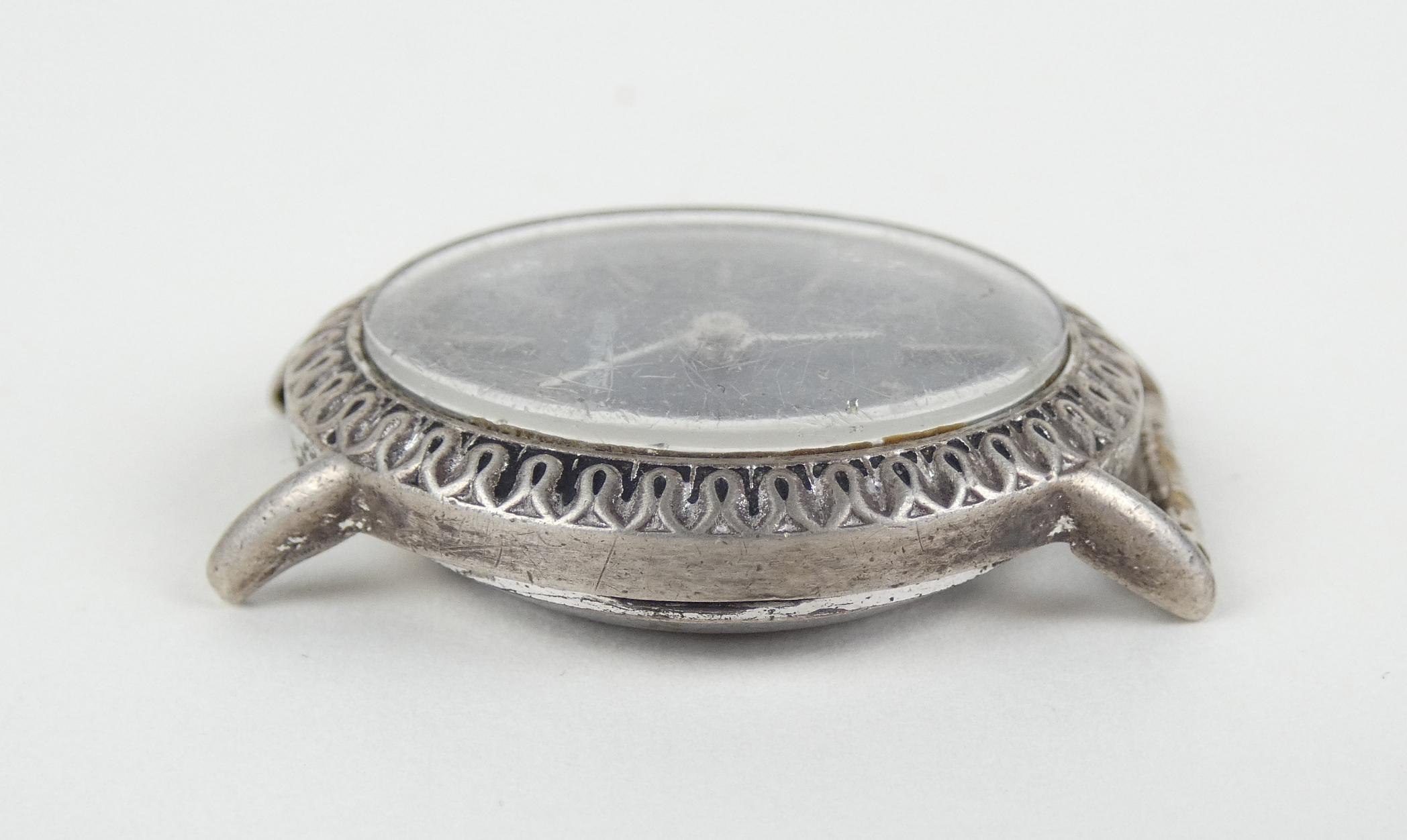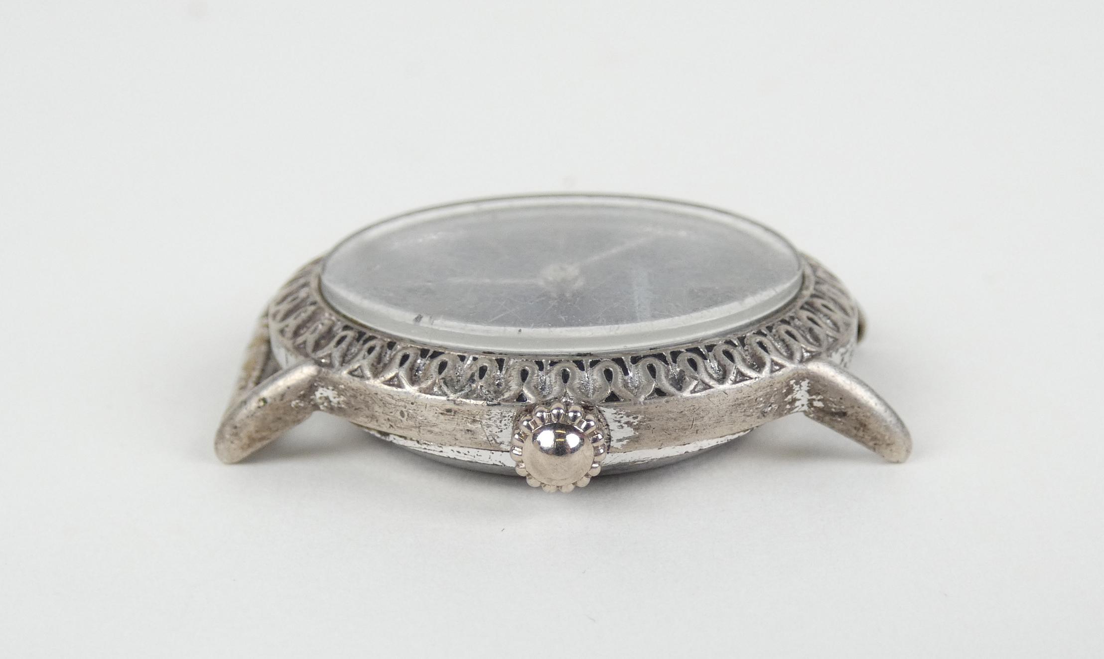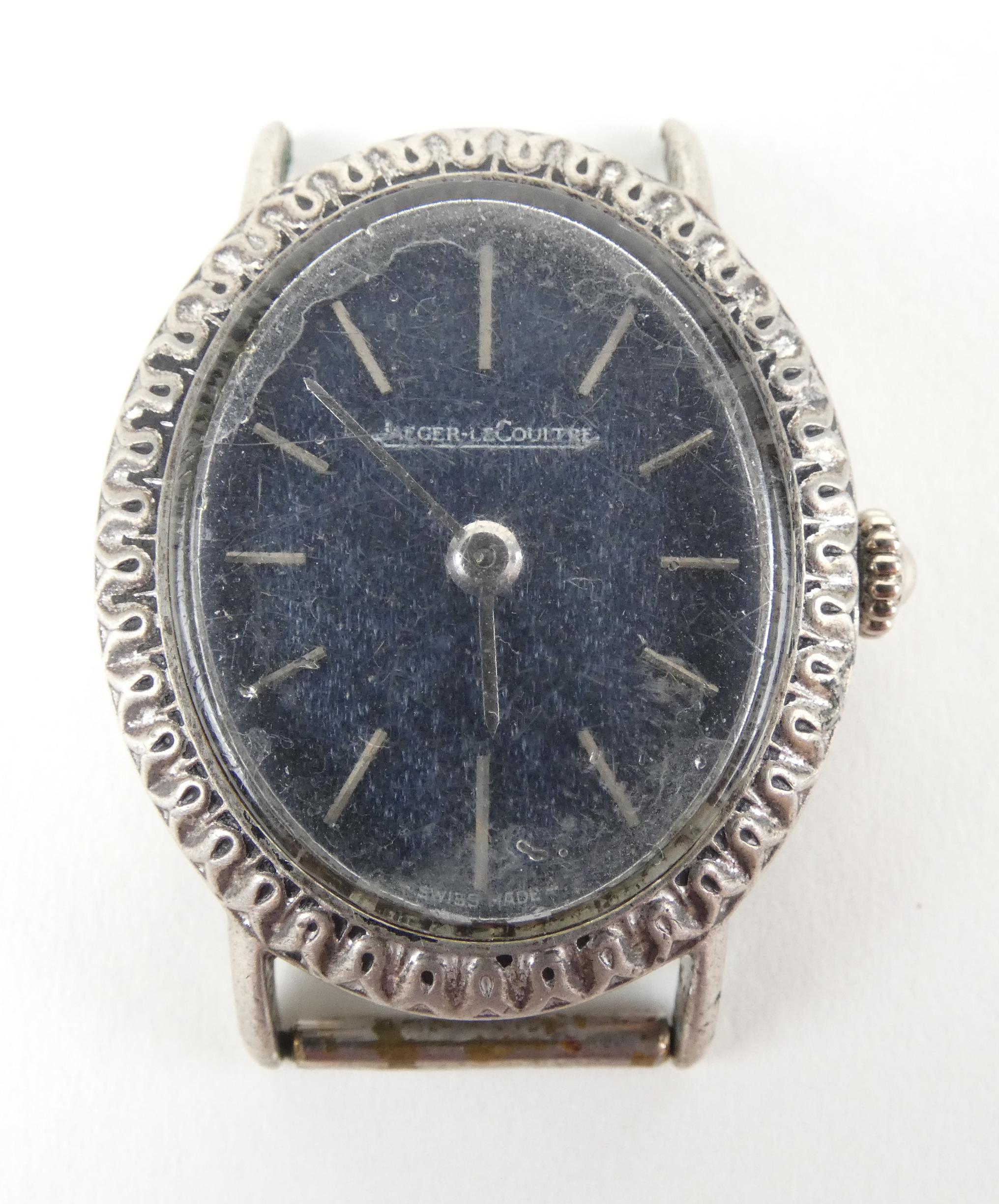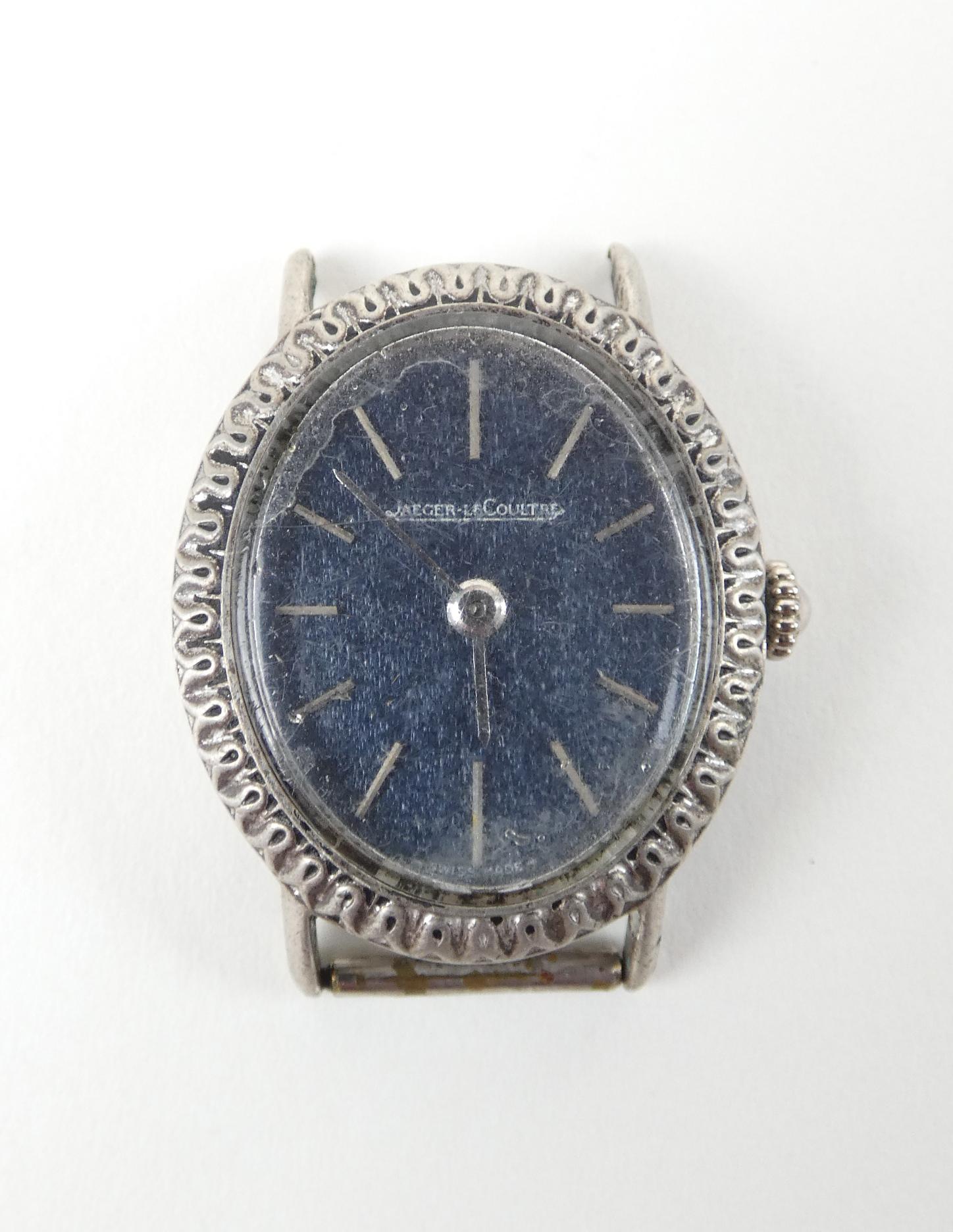 Bijou: Montre bracelet de dame JAEGER LE COULTRE en argent 800 mouvement à remontoir (En état, oxy) cadran aspect Lapis-lazuli 27x23mm sans bracelet