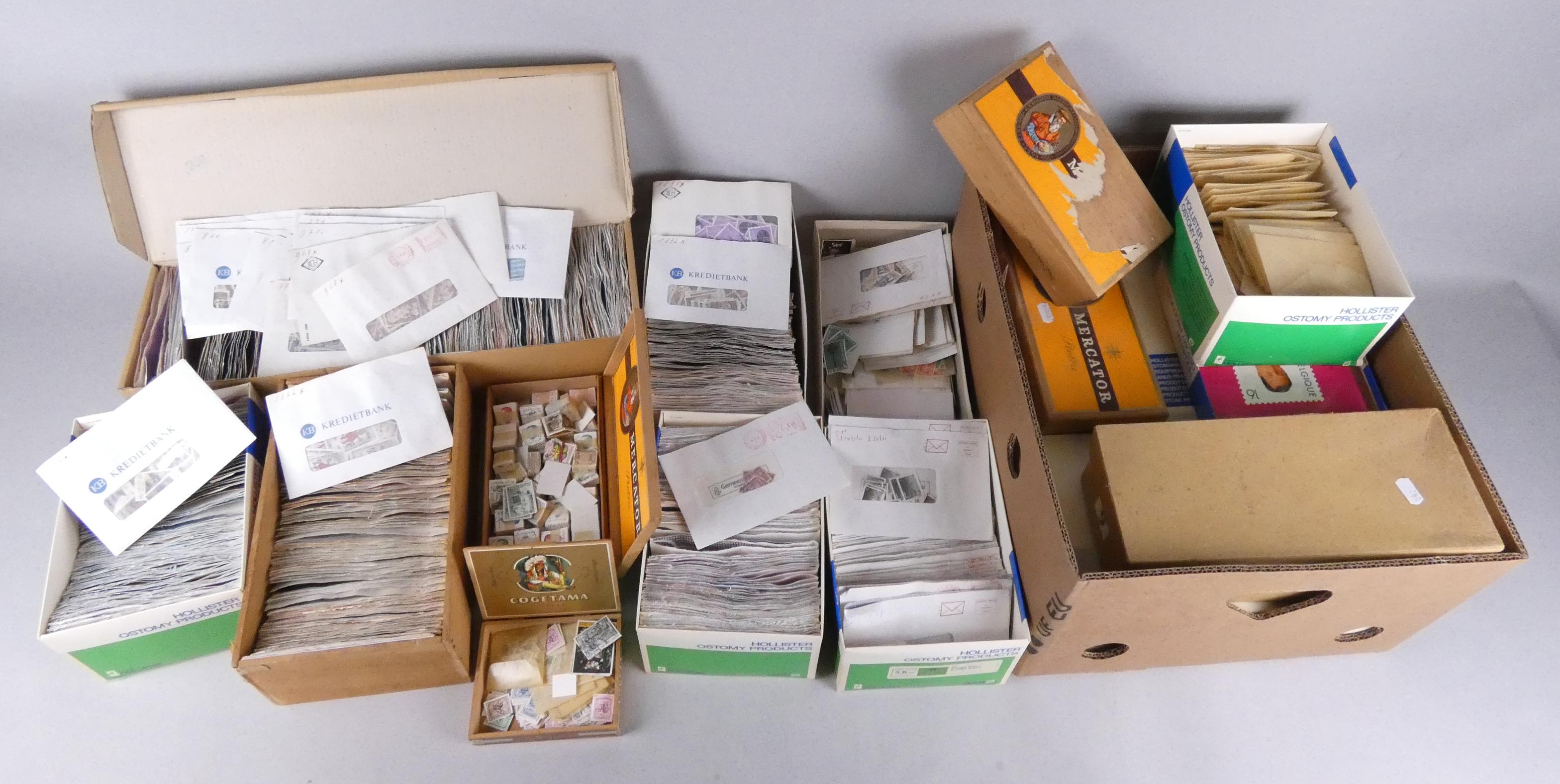 Collection de timbres: des dizaines de milliers de TP principalement belges oblitérés, quelques charniérés et neufs mélangés + quelques bottes et quelques étrangers