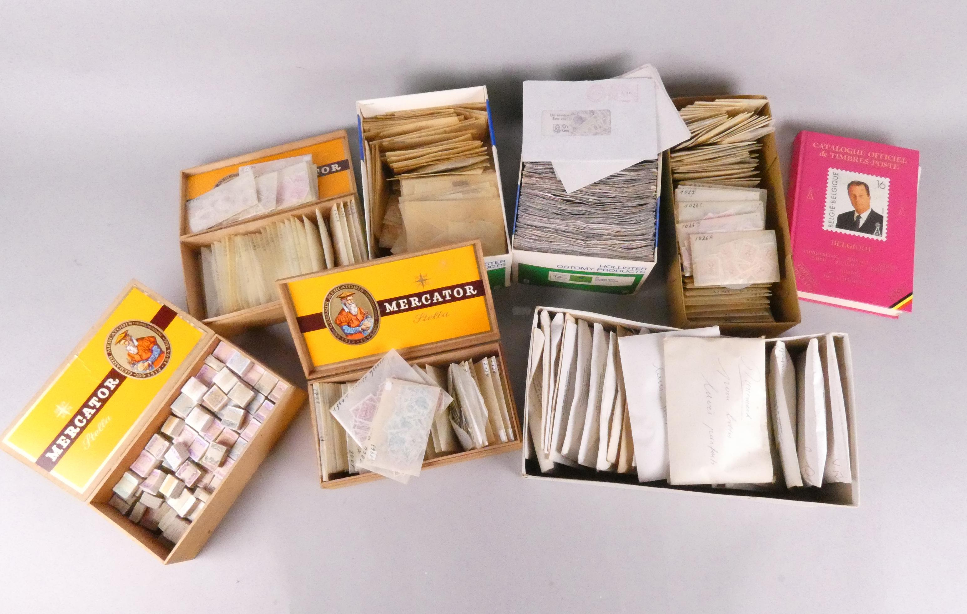 Collection de timbres : des dizaines de milliers de TP principalement belges oblitérés , quelques charniérés et neufs mélangés + quelques bottes et quelques étrangers