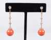 Bijou: Paire de boucles d'oreilles en or jaune 18K serties de corail EU ONLY et de diamants pour env. 0,55cts P: 7,3gr