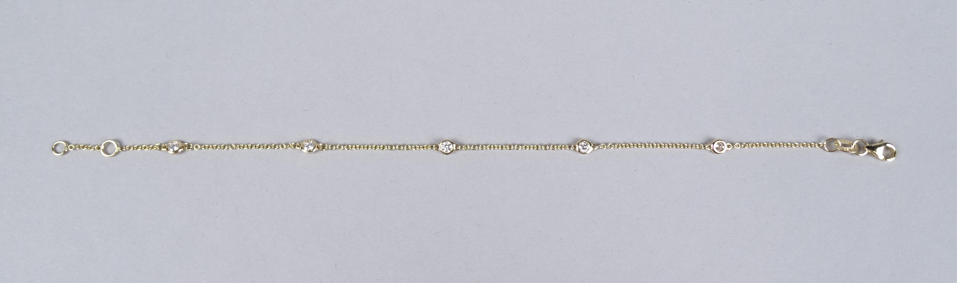 Bijou: Bracelet en or jaune 14K serti de 5 diamants pour env. 0,20cts P: 1,3g L: