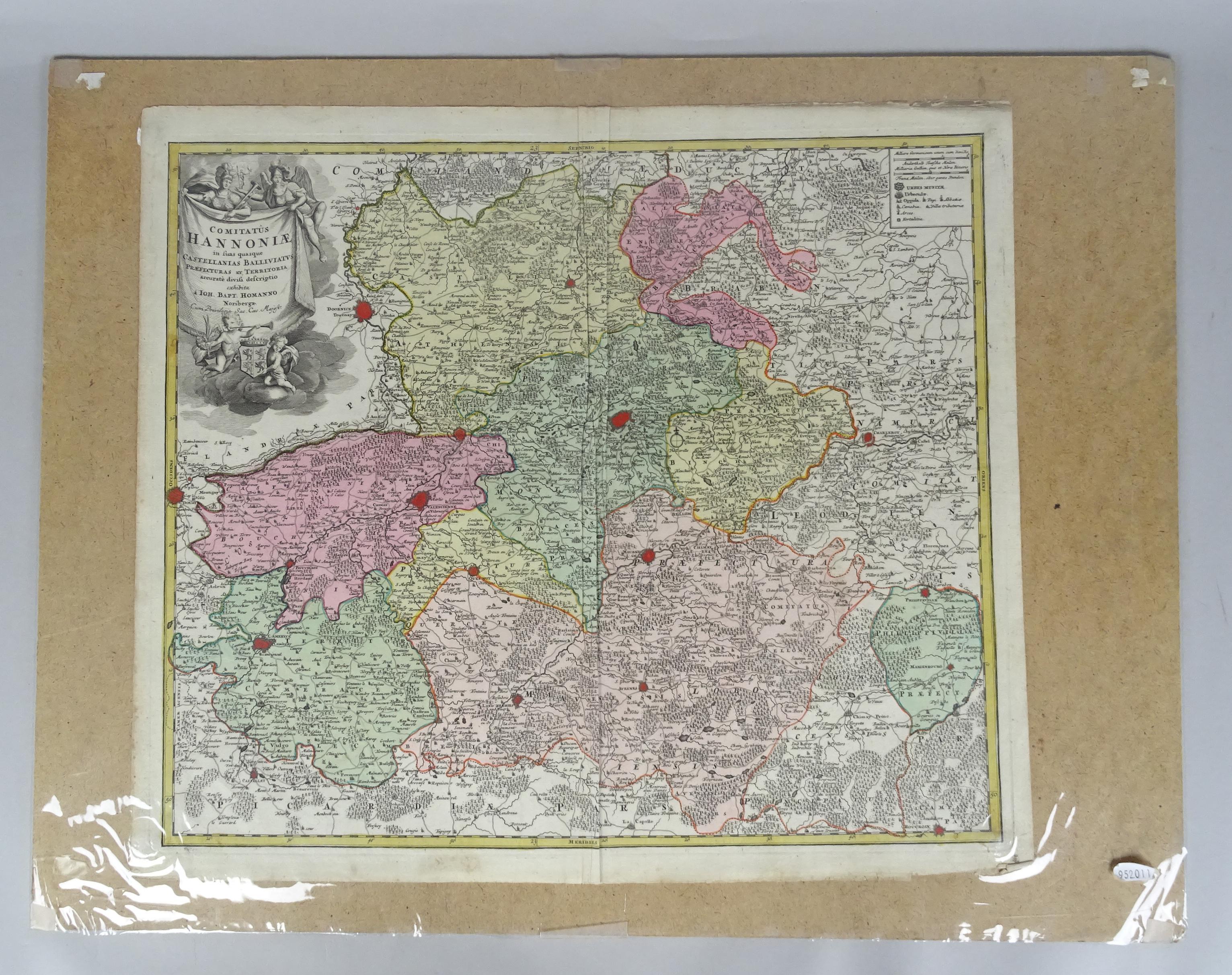 Estampe: gravure aquarellée sur cuivre -Comté de Hainaut- 1720 HOMANN 49,5x58cm
