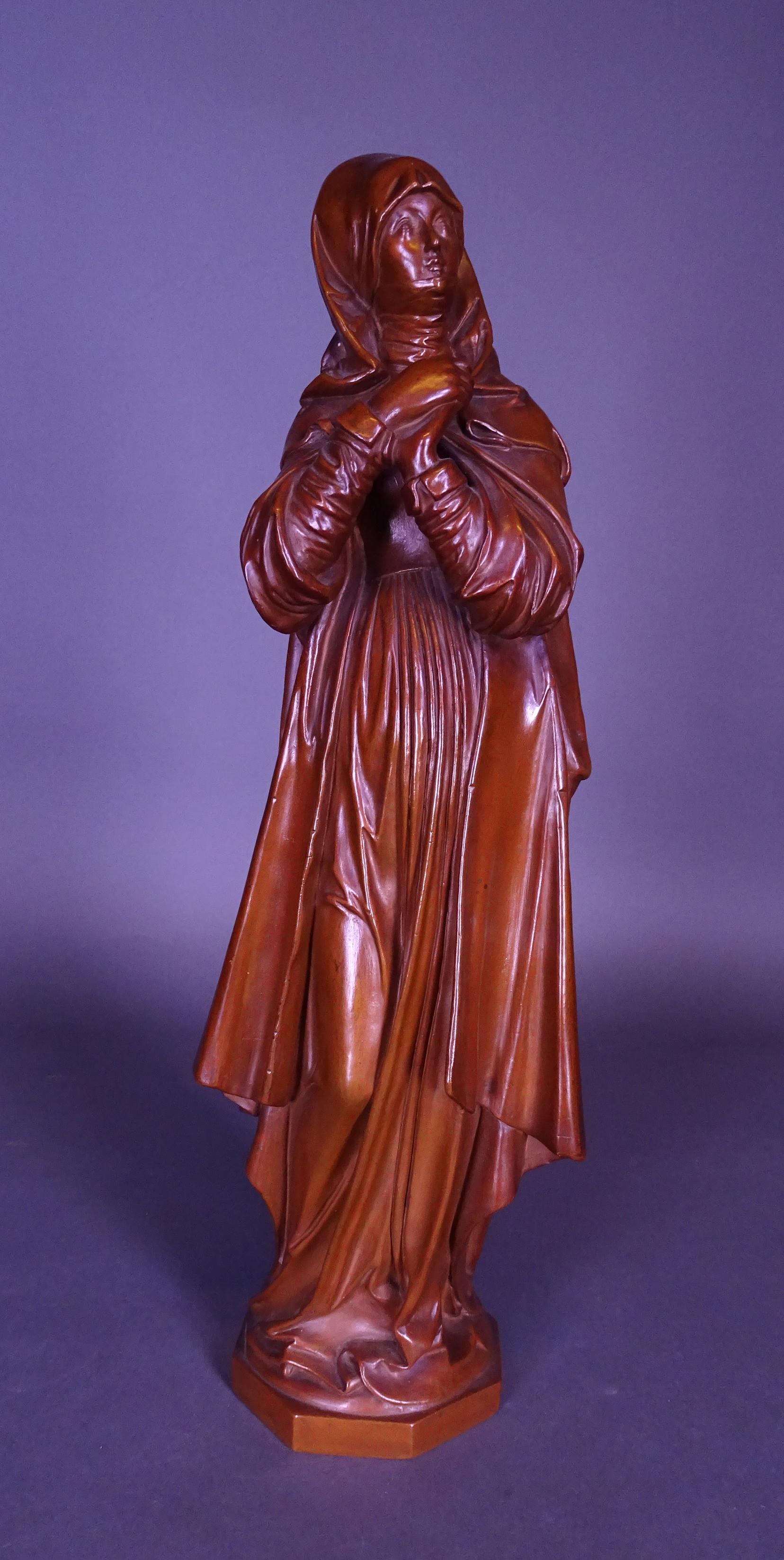 Sculpture: Terre cuite patine brune -Dame de style médiéval debout- anonyme fin