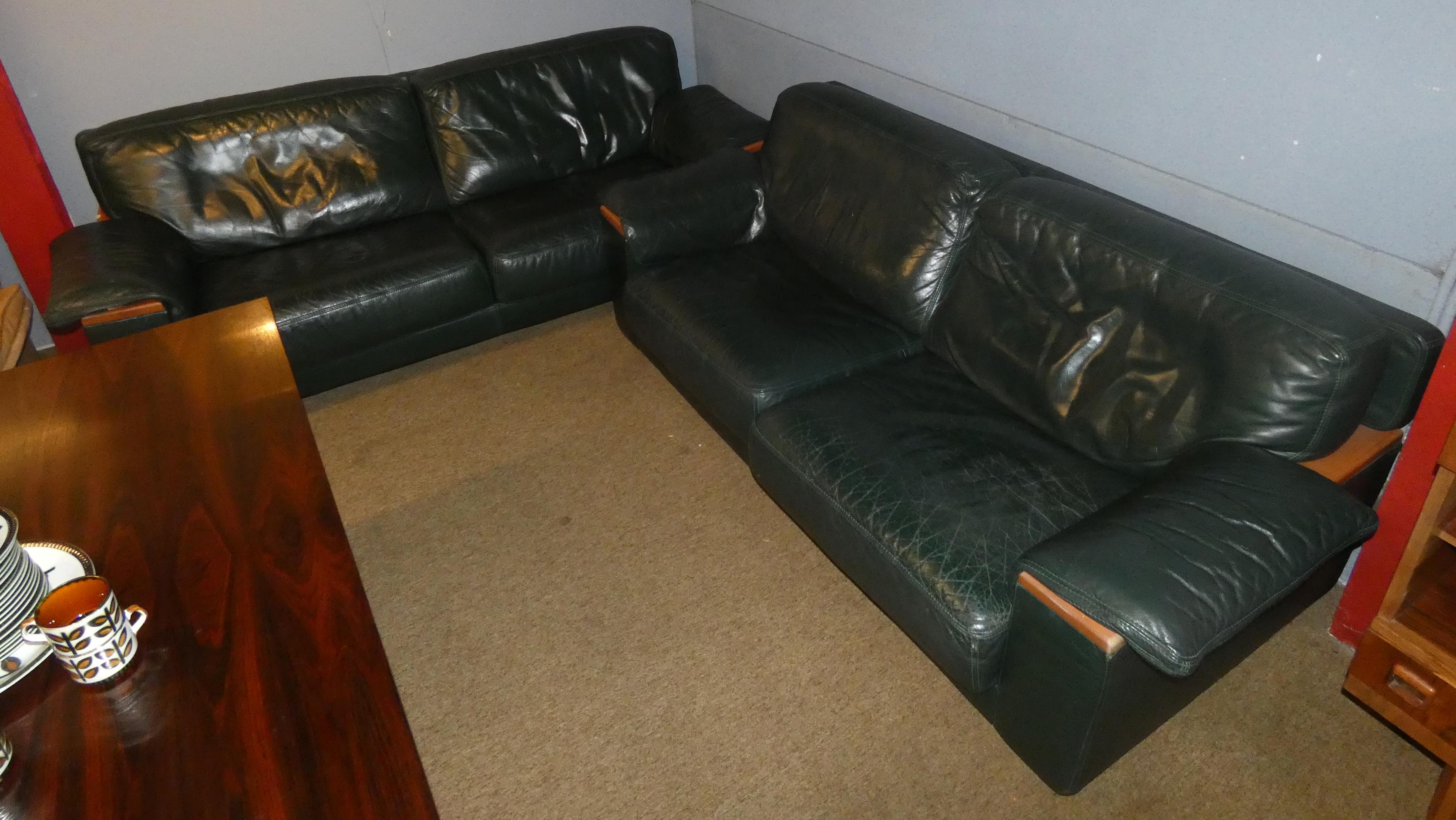 Meuble: Canapés en cuir (usures d'usage) éd CINNA design HIERONIMUS ANNIE (20e,