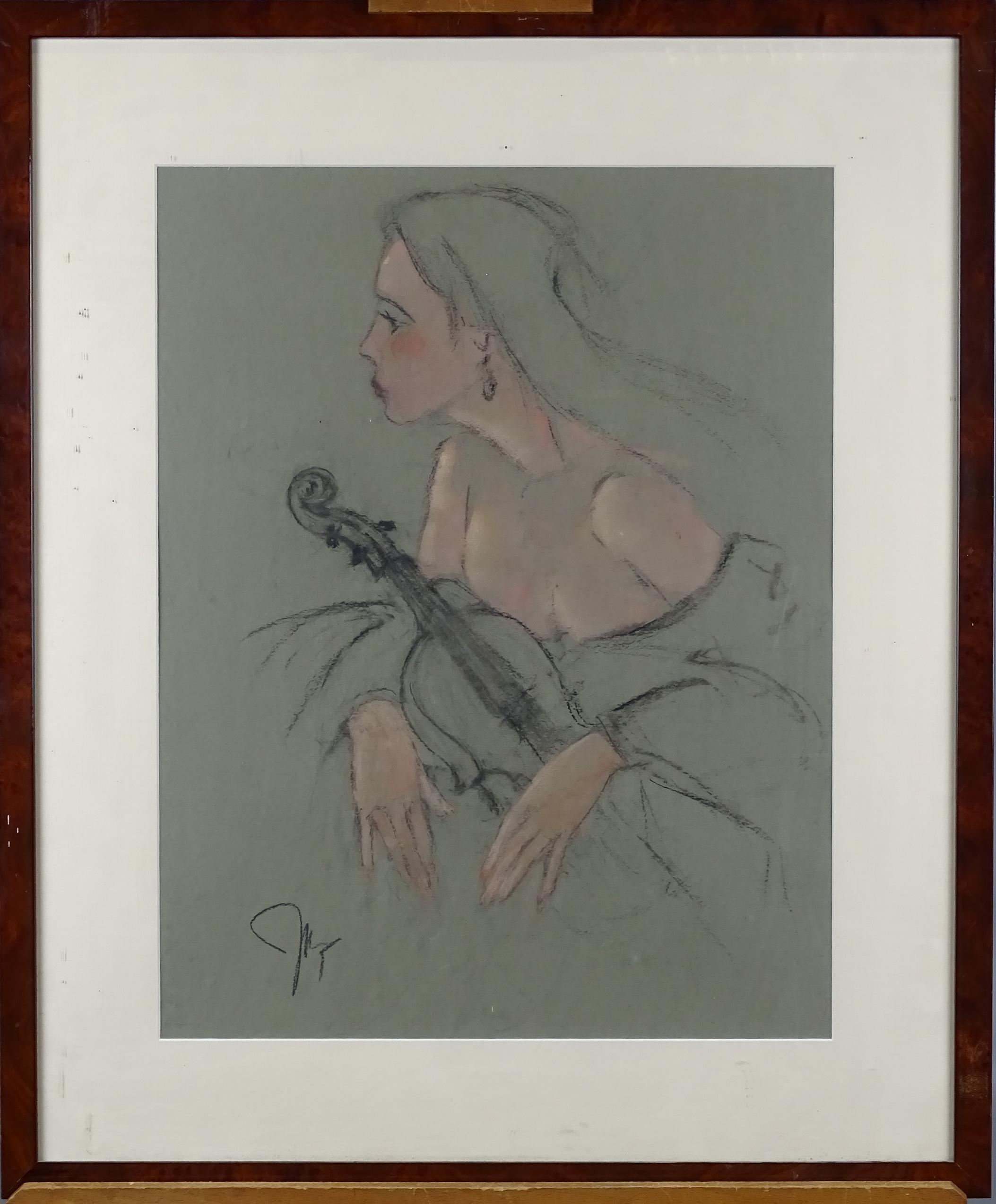 Tableau: dessin technique mixte -Musique intérieure- monogrammé *DE KEERSMAEKER J.* (Jean) (20eS) 45x36cm cadre bois s/v