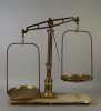 Objet: balance à bras égaux sur colonne en bronze plateaux en cuivre 19eS sur so