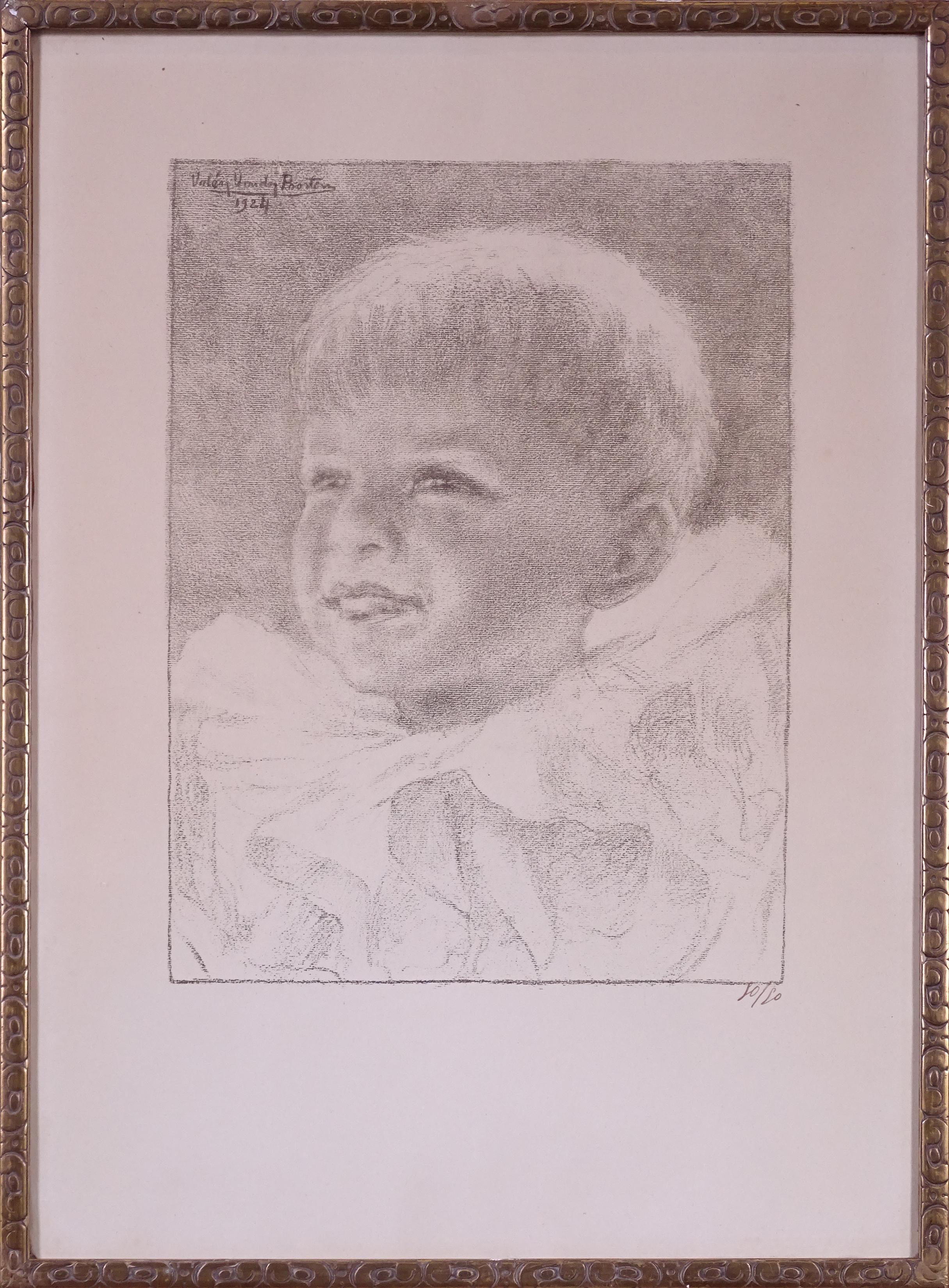 Estampe Litho -Tête d'enfant- 1924 10/10 *VANDER POORTEN V.* (Valery) (1875-1932) 33x24,5cm cadre doré s/v