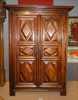 Meuble: Armoire en chataignier 2 portes à panneaux en pointede diamant, corniche et traverse droites fin 17e/déb 18eS H:204x152x76cm