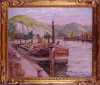 Tableau HST -Péniche à quai- signé *TIELENS A.* (Alexandre) (1868-1959) 45x55cm cadre bois sculpté doré