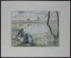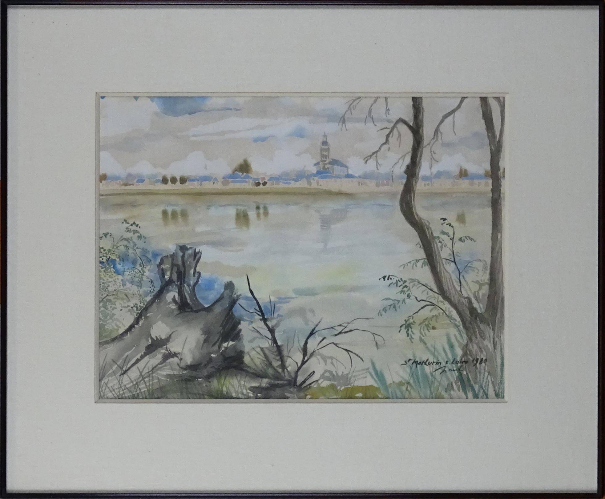 Tableau: Aquarelle -Saint Mathurin s/Loire- 1980 signé *ROUGE P.* (Paul) (1927) 29x39cm cadre noir s/v