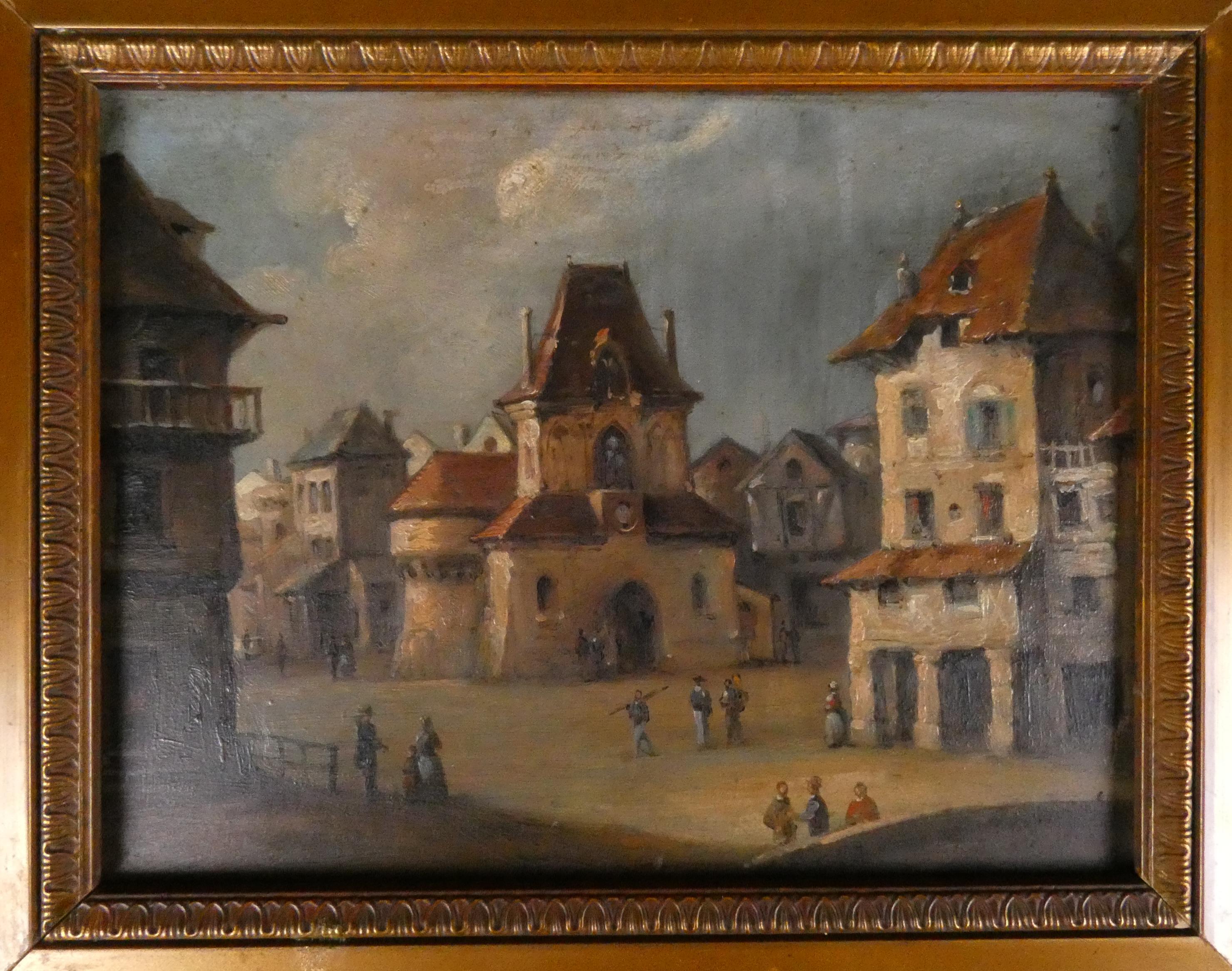 Tableau HSB acajou (paire) -Vie du Bourg animé- anonyme 19eS cadre de style doré