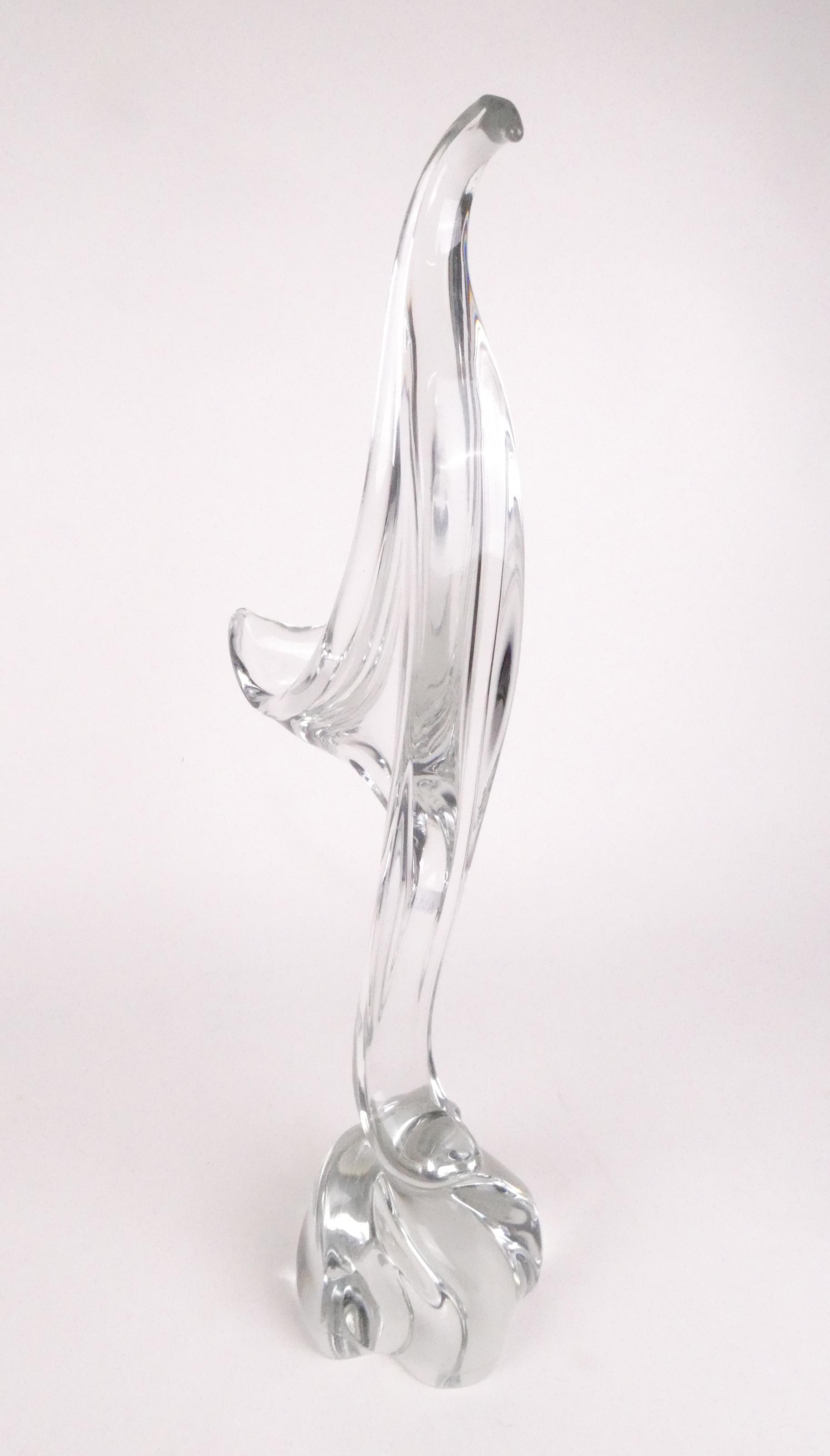 Verrerie: Coq stylisé en cristal (1 egr) signé Daum France H:53,5cm