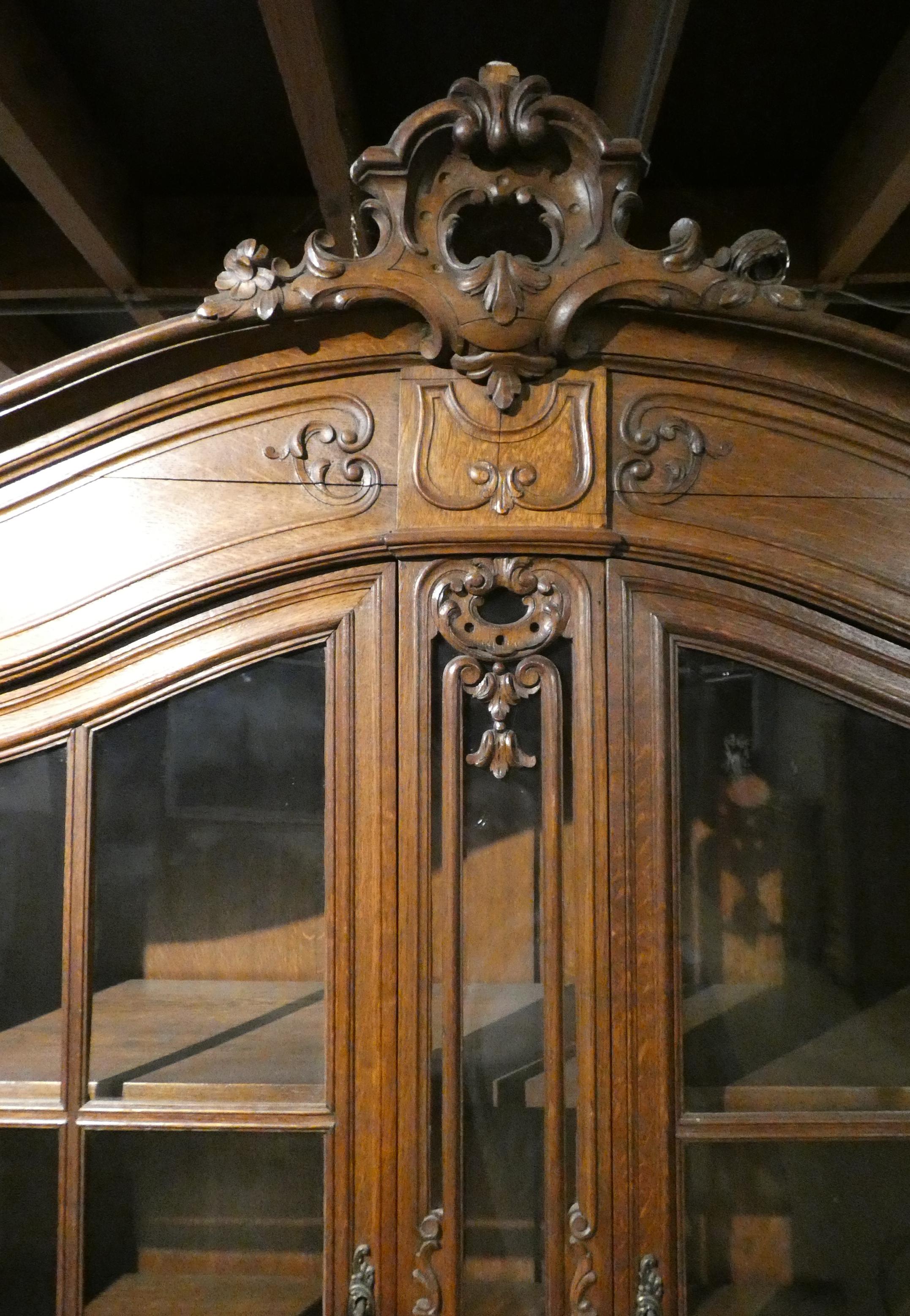 Meuble 2 corps liégeois vitrine LXV en chêne sculpté fin 19eS début 20eS H:260x1