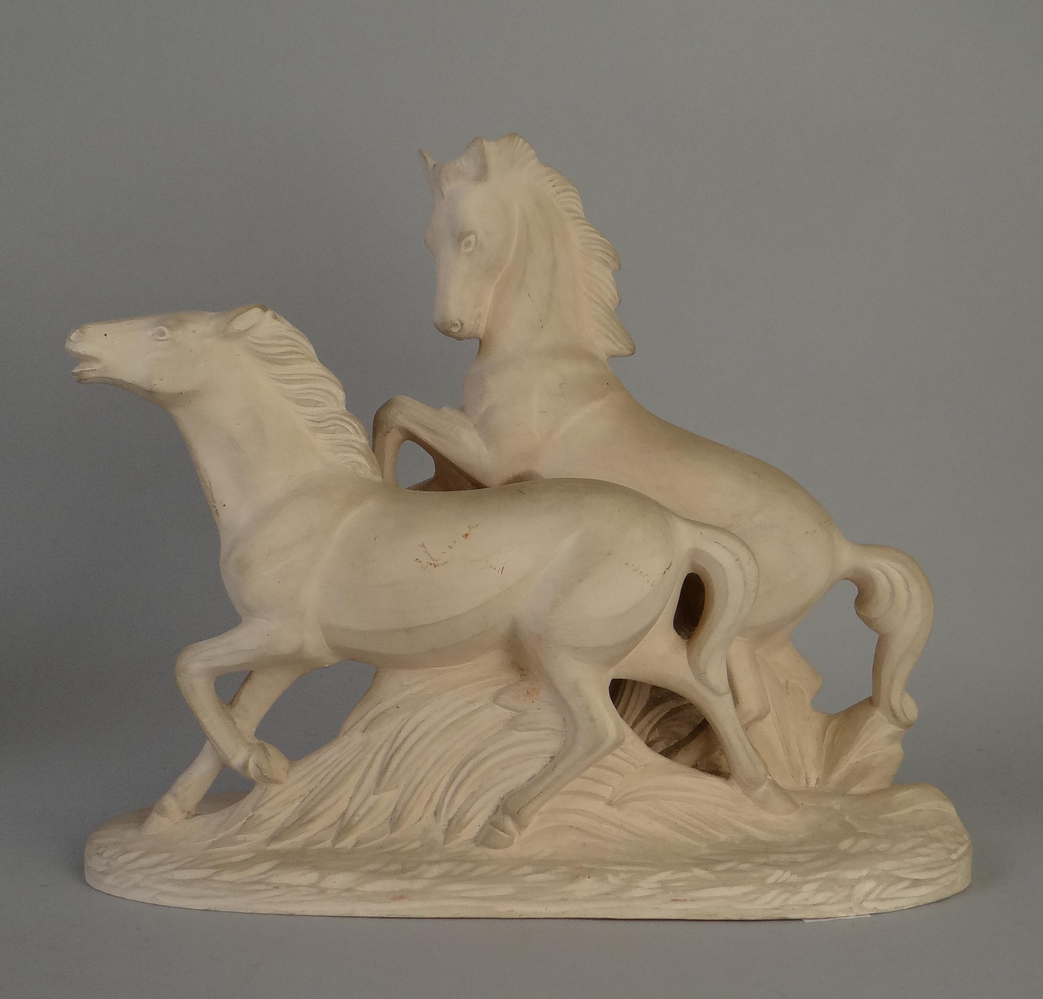 Sculpture: Terre cuite -Couple de chevaux- signé 1ère moitié20eS 25x29cm
