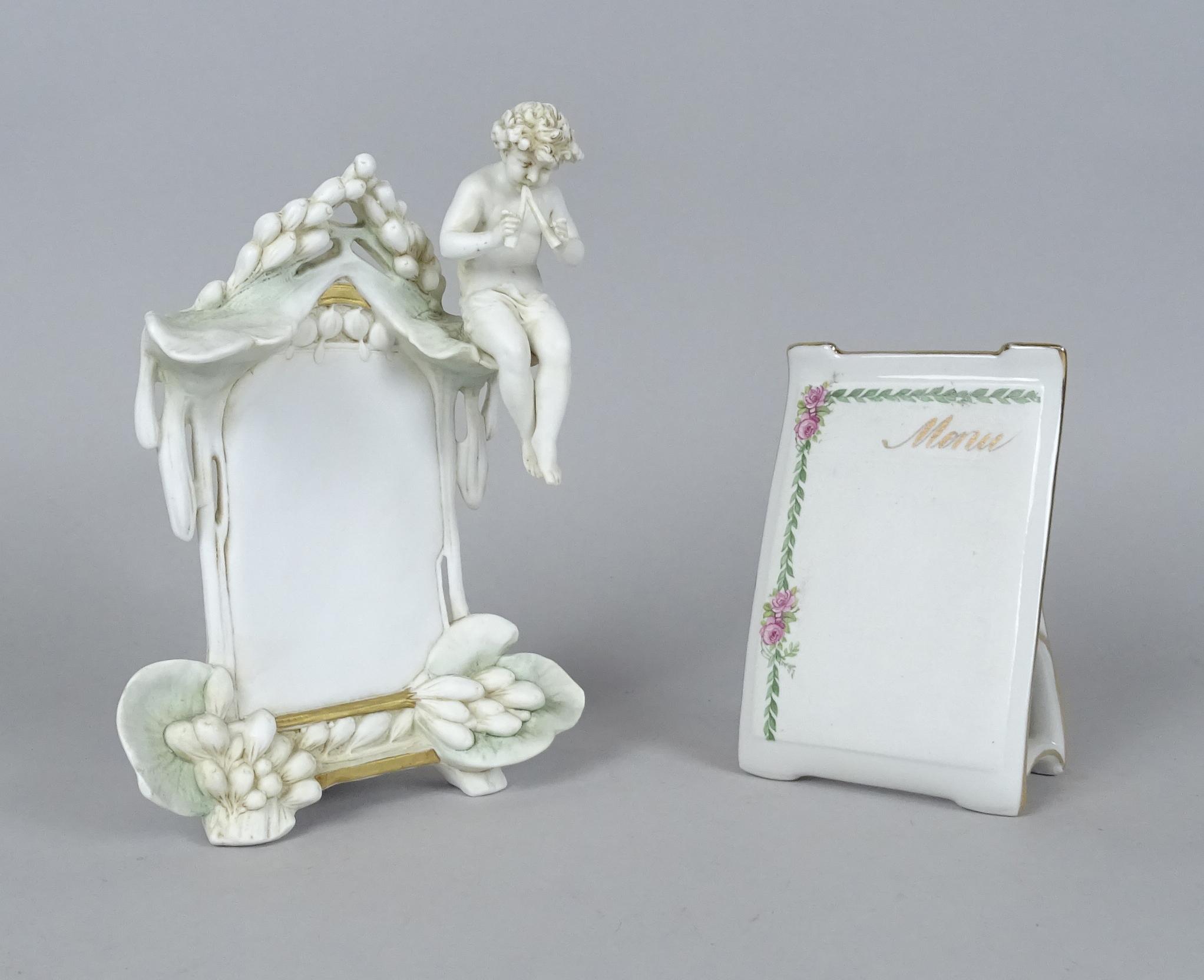 Céramique: 2 porte-menus en porcelaine début 20eS: 1 en biscuit putto musicien H