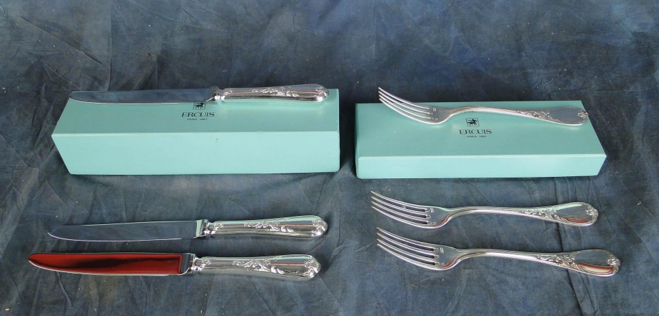 Couverts en métal argenté de style marque ERCUIS France: 12 fourchettes 800gr et 12 couteaux