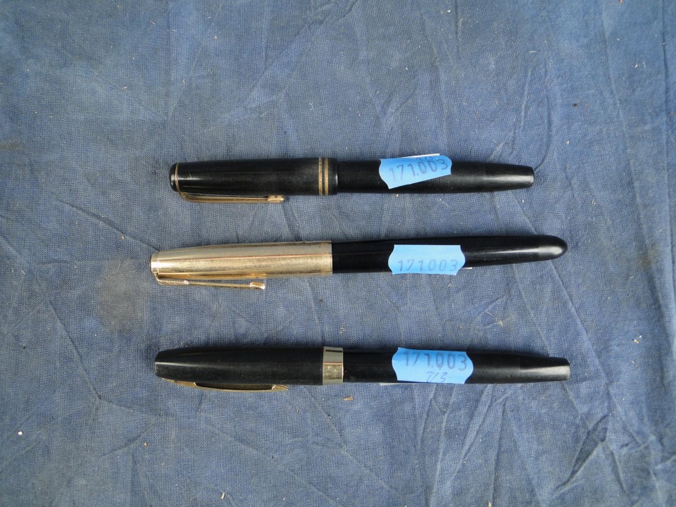 Collection: stylos à plumes: 2 Parker 1 plume 14ct 1 plaqué or 12Ct, 1 stylo à plume Sheafferr's