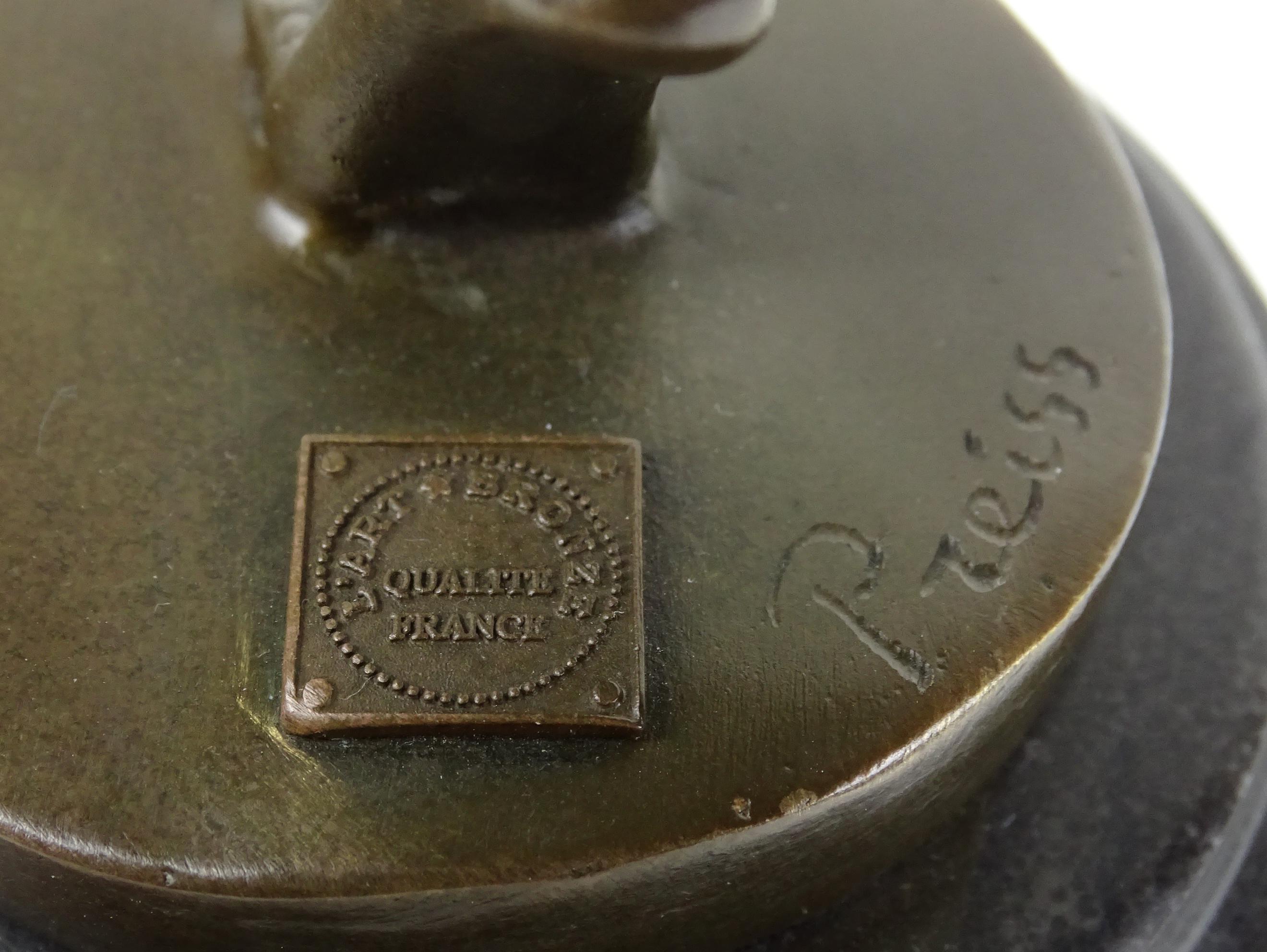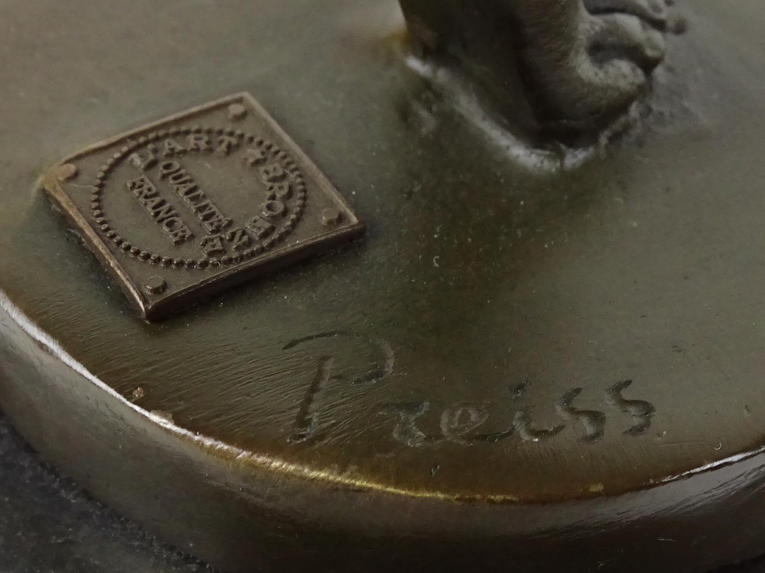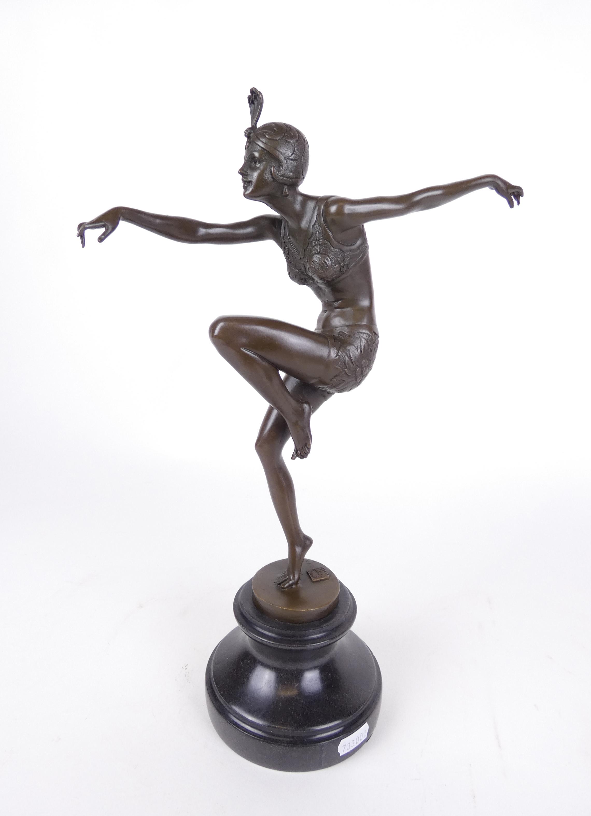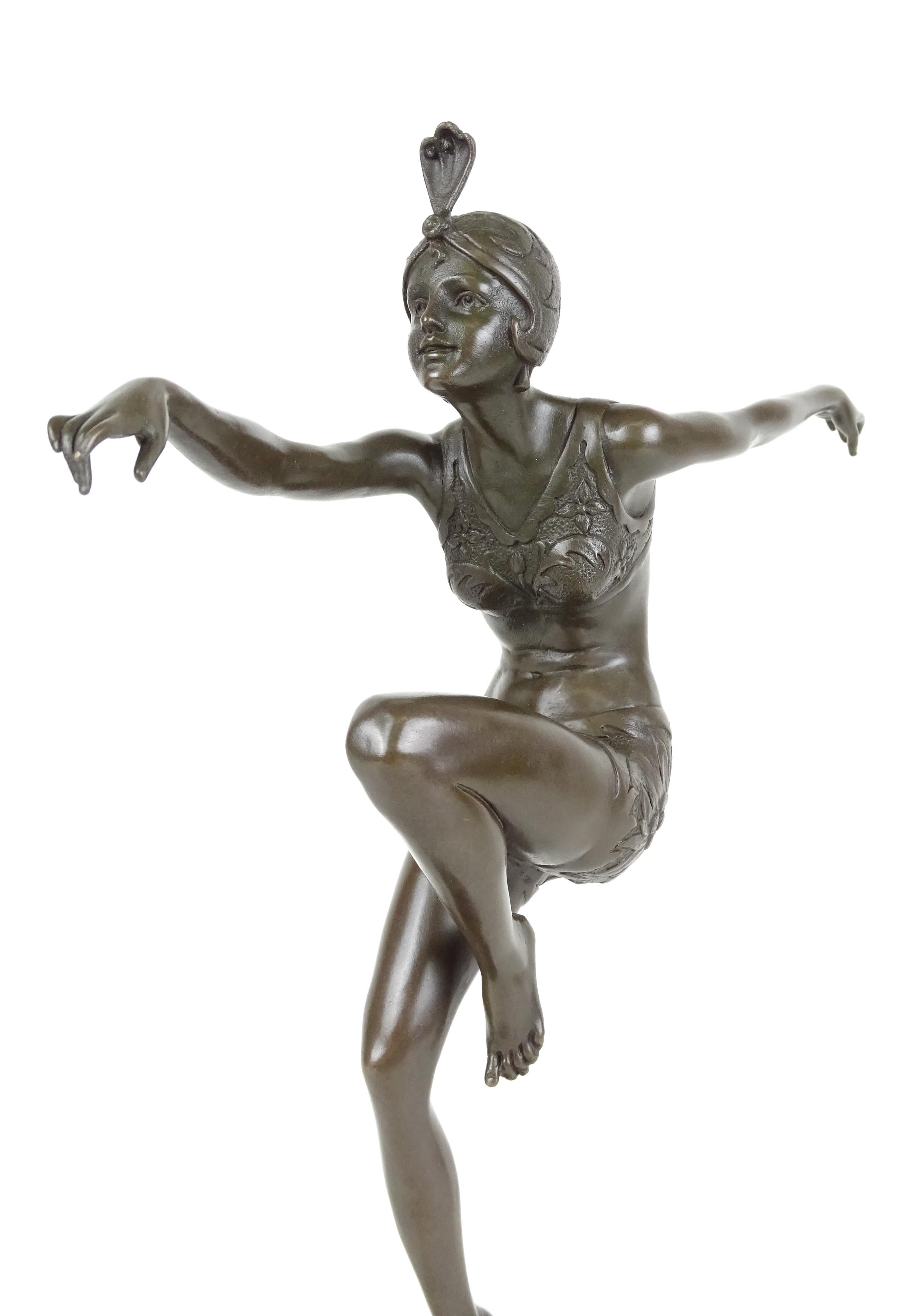 Sculpture: Bronze patine brune -Danseuse des années folles- signé d'après *PREISS F.* (Ferdinand) (1882, 1943) cachet L'art bronze qualité France H:30,5cm socle marbre