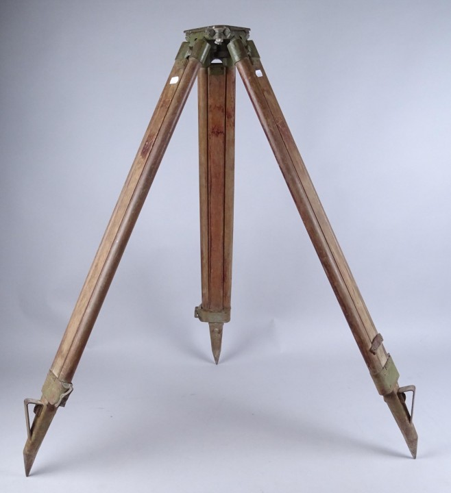 Militaria: Trépied militaire bois et métal marquage anglais H:93cm