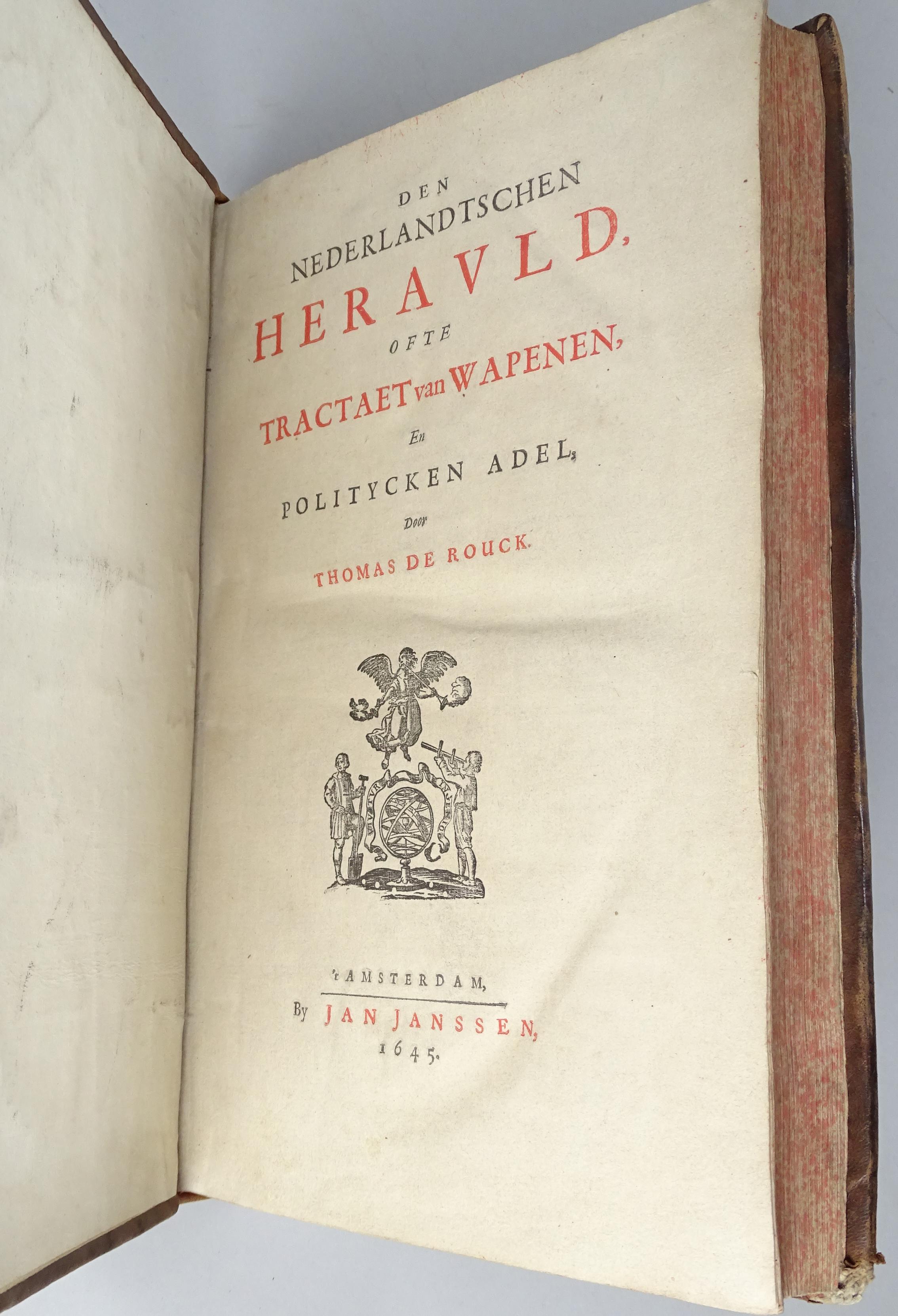 Livre : 1vol in - folio - Nederlandtschen herauld , ofte Tractaet van wapenen - de Thomas DE ROUCK à Amsterdam 1645 éd Janssen reliure pleine (d'époque) dos ornés