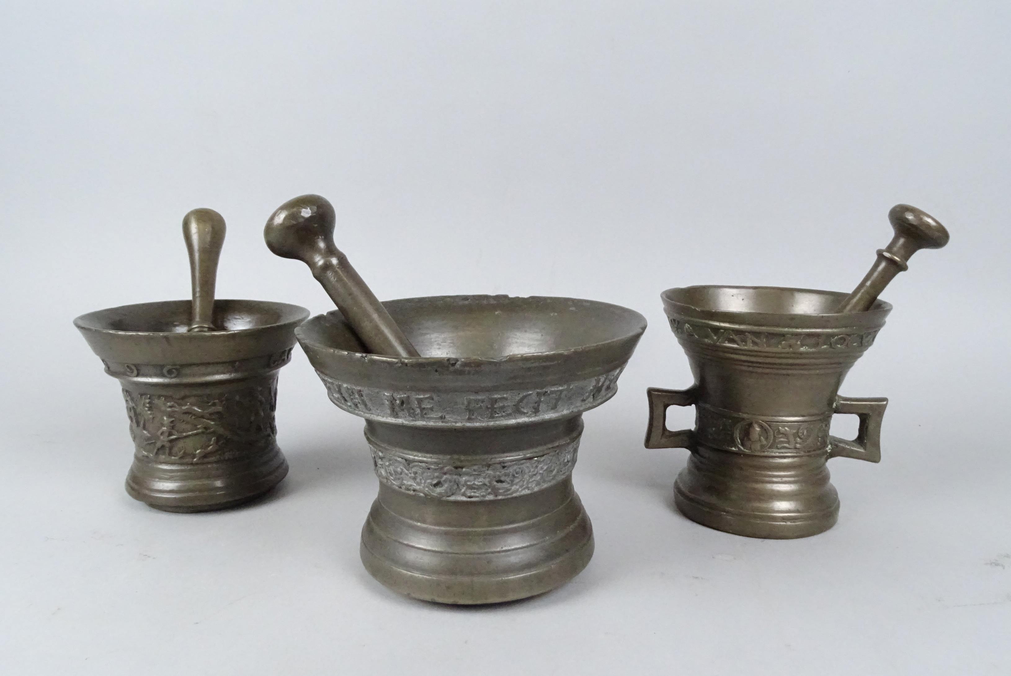 Objet: 3 mortiers anciens en bronze avec pilon H:13cm