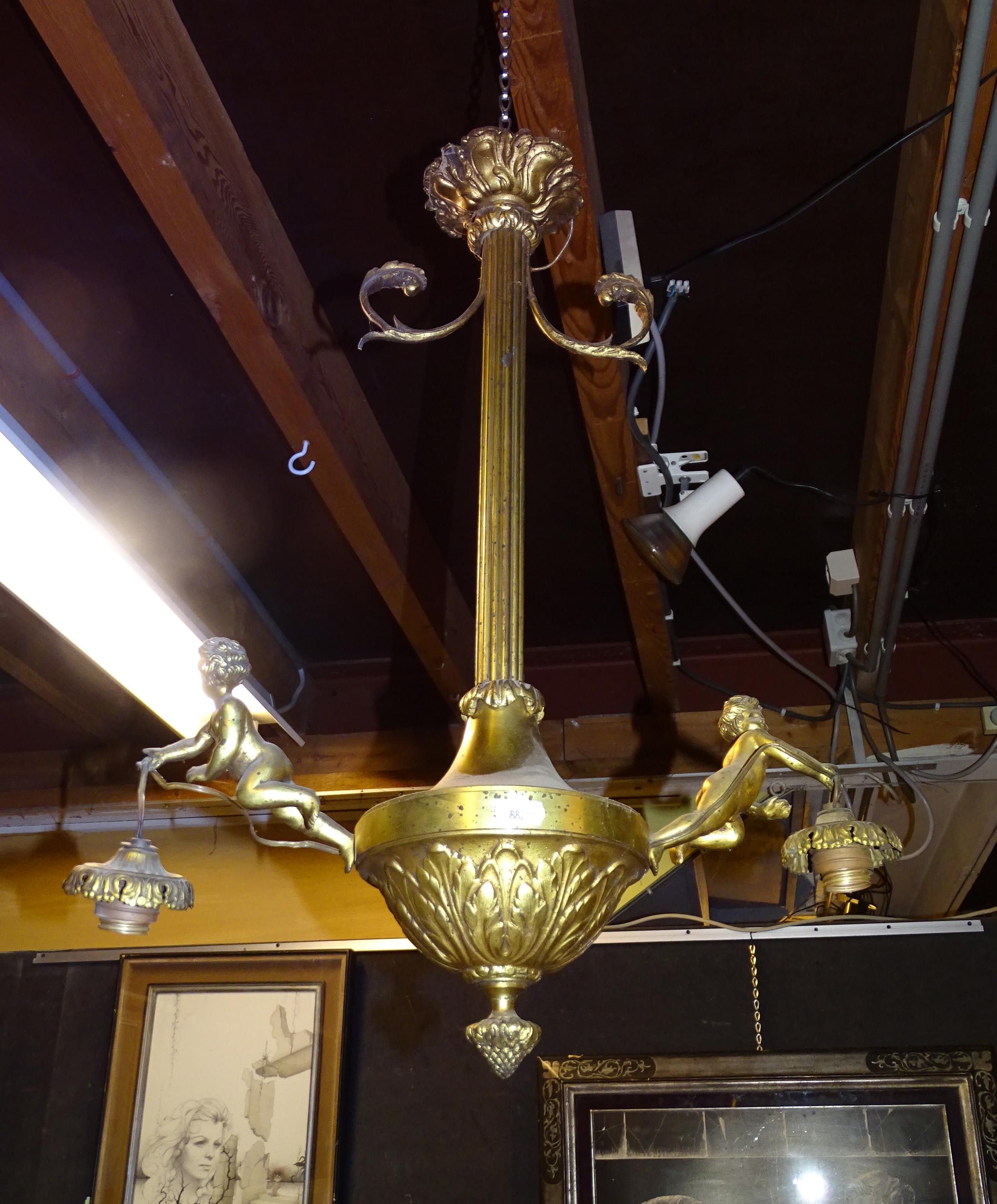 Luminaire: lustre en bronze doré avec angelots 2 lumières H:61cm