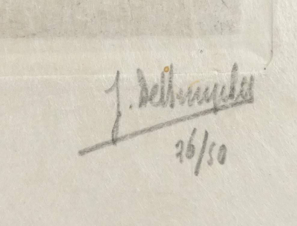 Estampe: Eau-forte sur papier Japon -Grotesques- N° 26/50 daté 1925 signé *DE BRUYCKER J.* (Jules) (1870, 1945) s24x19cm N°123 dans l'oeuvre de l'artiste c alu s-v