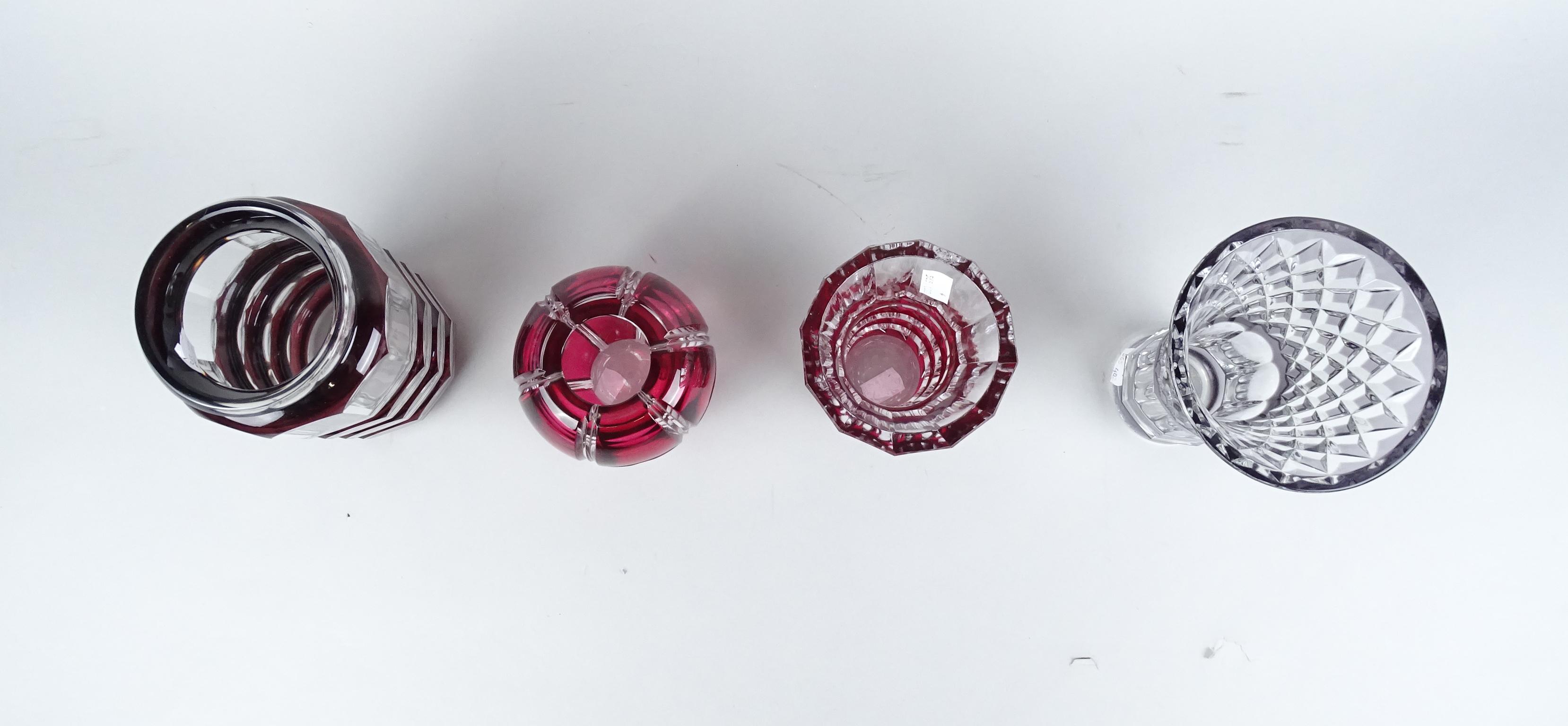 Verrerie: Vase en cristal taillé Val saint Lambert (4) dont 1 signé N°227/500 H: 11 / 15 / 20 / 20cm