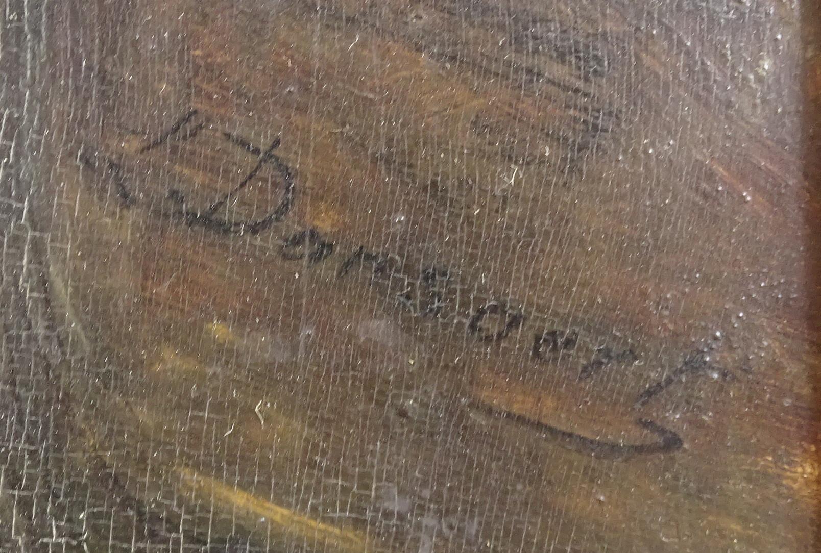 Tableau HSB (usures, gerçures) -Le serrurier- signé *DANSAERT L.* (Léon) (1830, 1909) 46x38cm cadre de style (lacune)