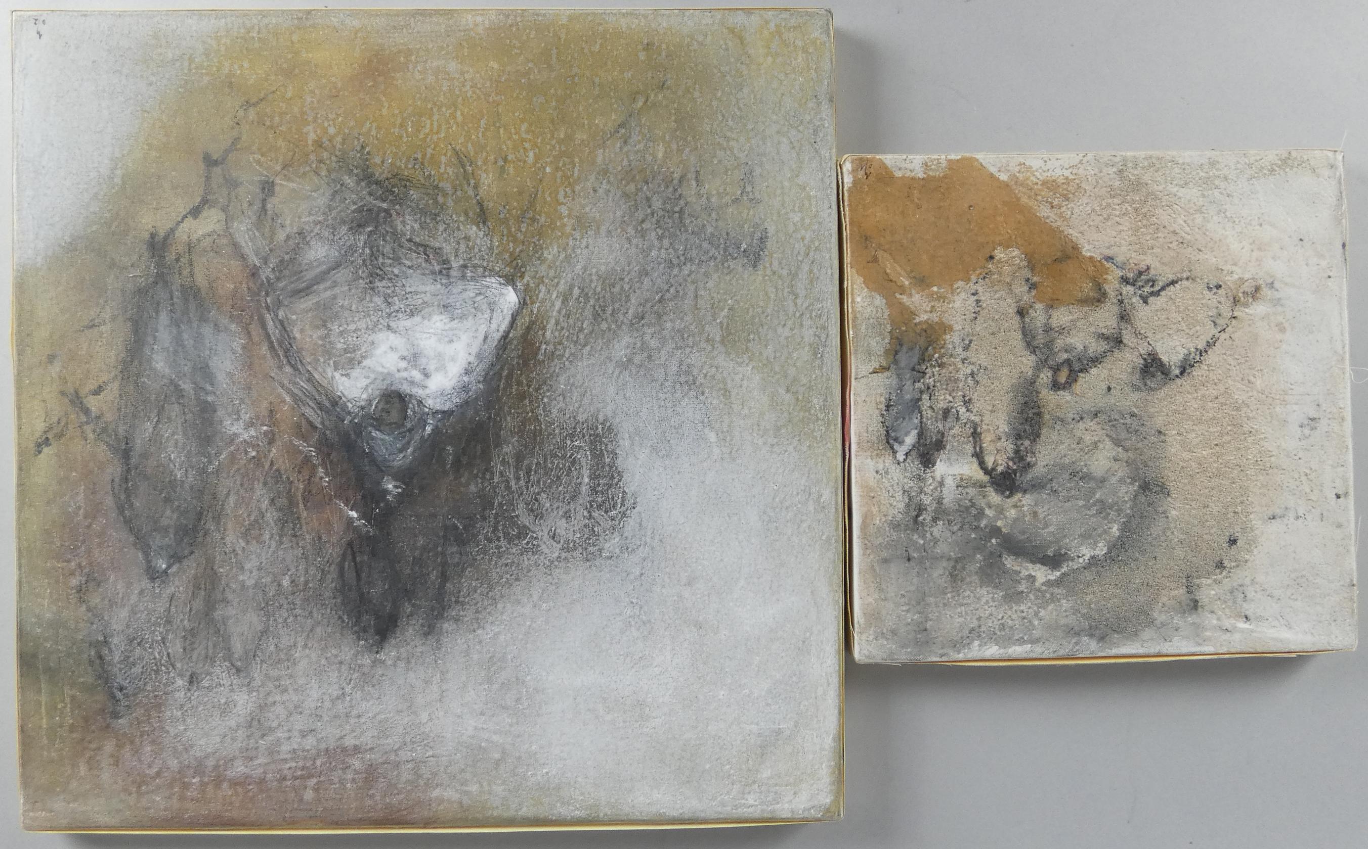 Tableau: Techniques mixtes (2pcs) -sans titre- daté 2001 et 2002 *FAVART AMOUROUX N.* (Nausicaa) (1968) 25x25cm et 40x40cm sans cadre