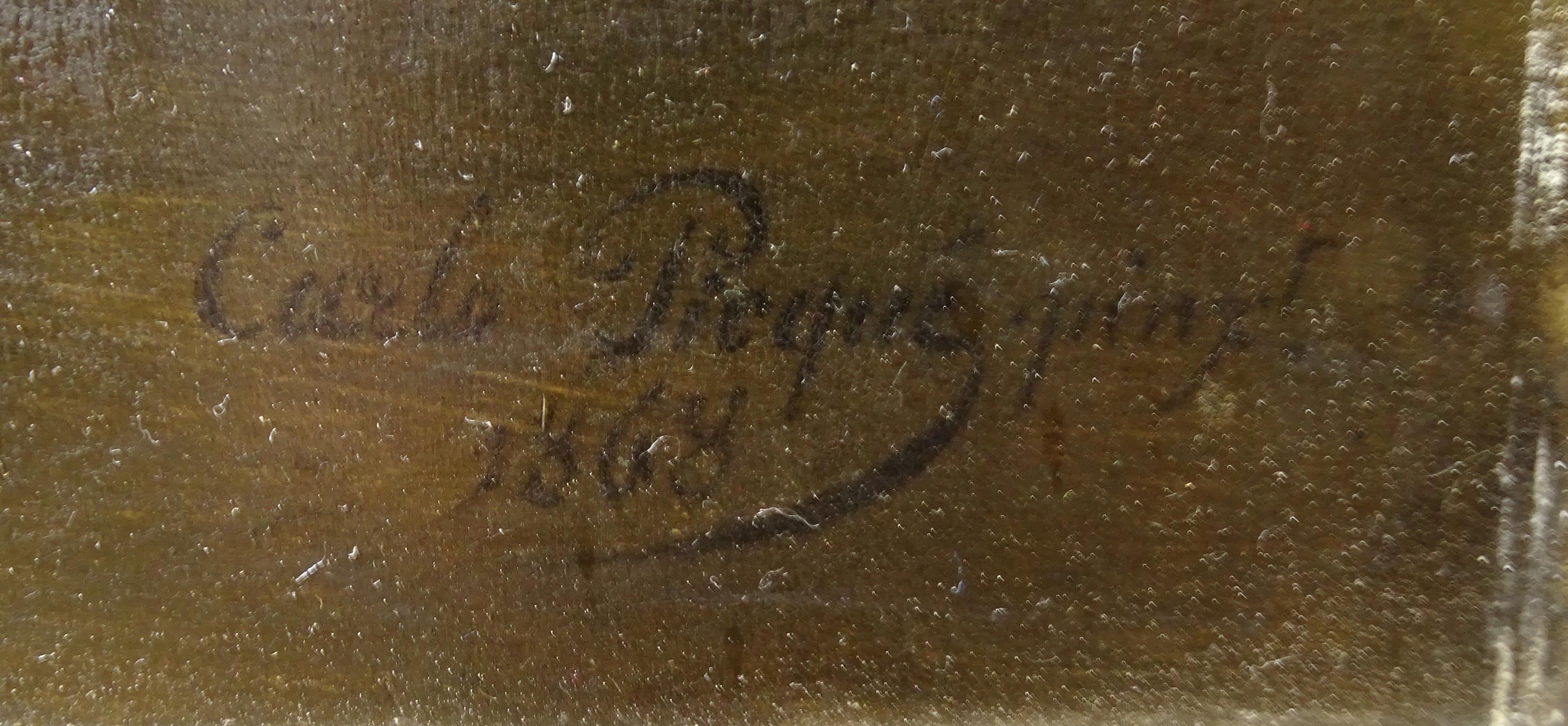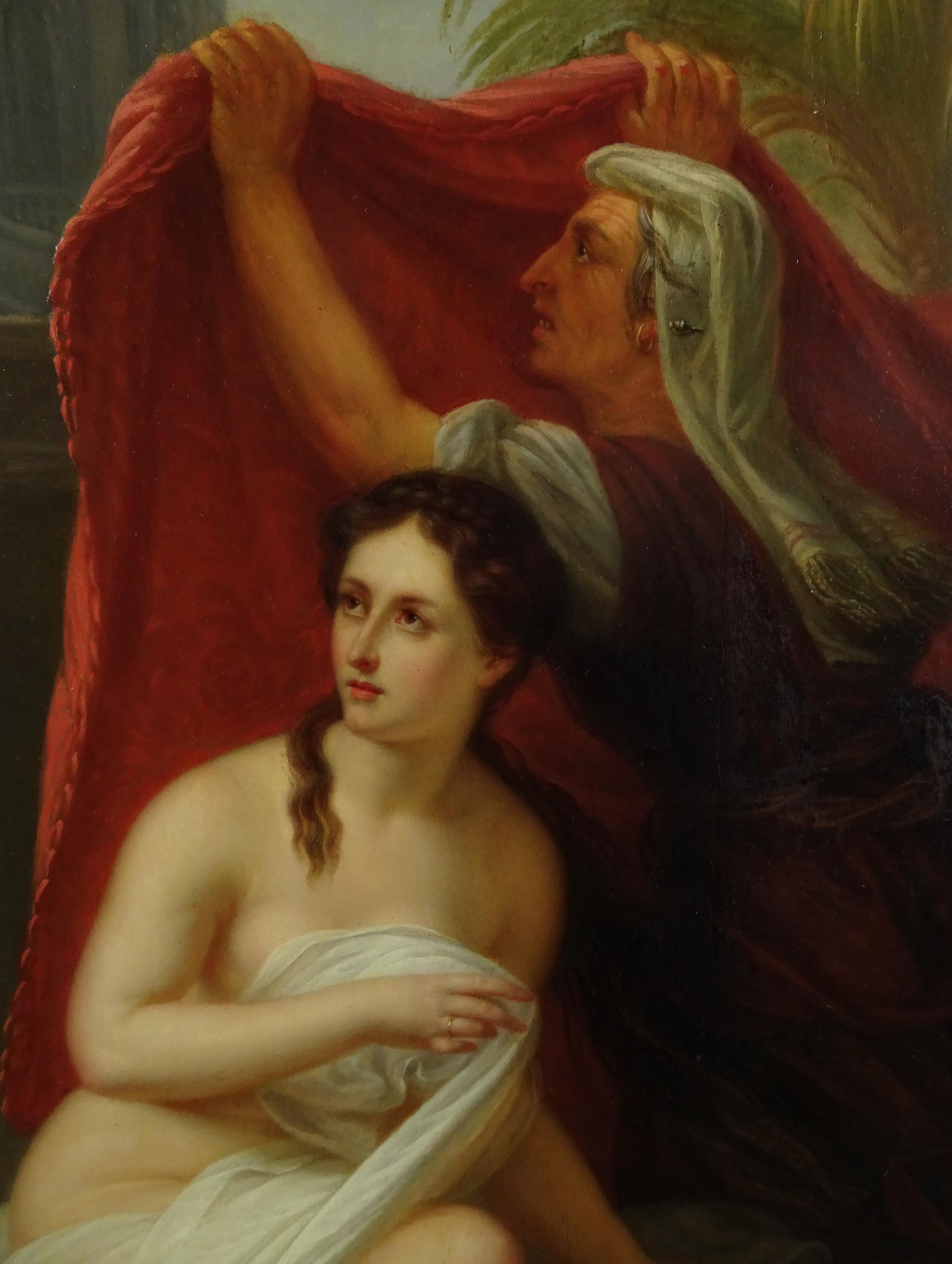 Tableau HSB -Bethsabée au bain- daté 1868 signé *PICQUE C.* (Charles Louis) (Deinze 1799, Bruxelles 1869) 92x71cm cadre de style doré