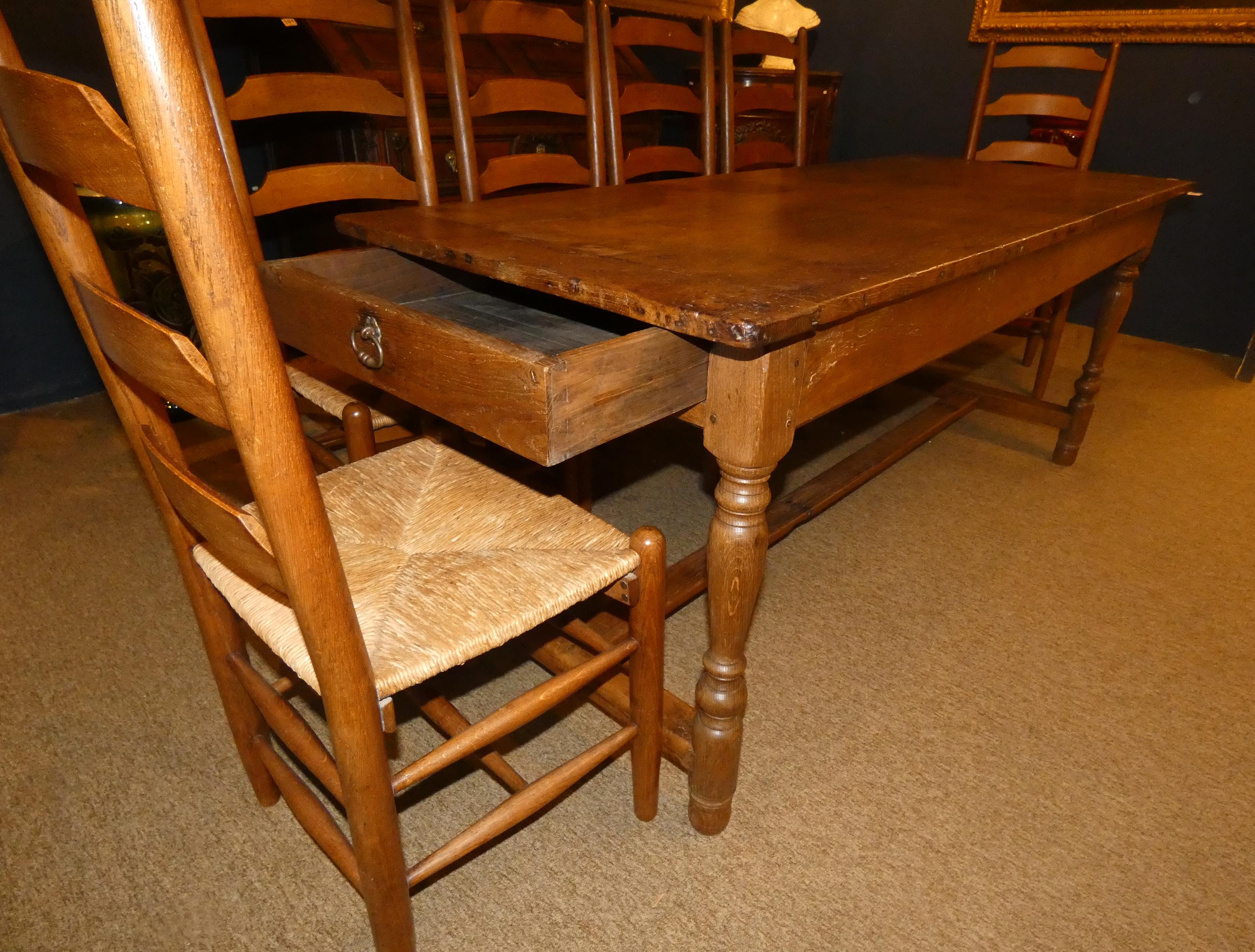 Meuble: Table de ferme en chêne 75x182x72cm + 6 chaises