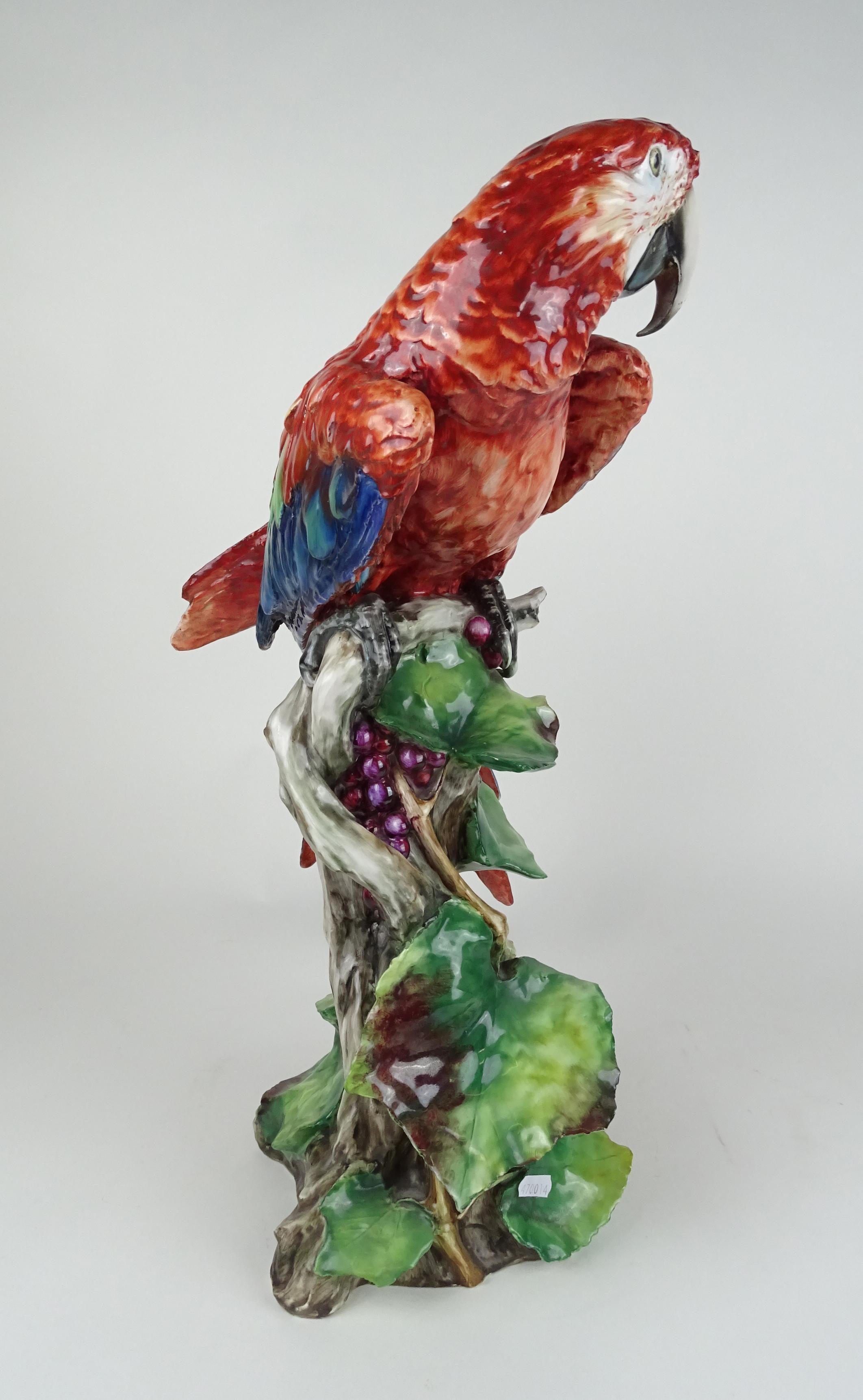 Céramique: Grand Ara sur branche de vigne attribué à *TAY* () (Italie 1915, 1991) (rest) H:59cm