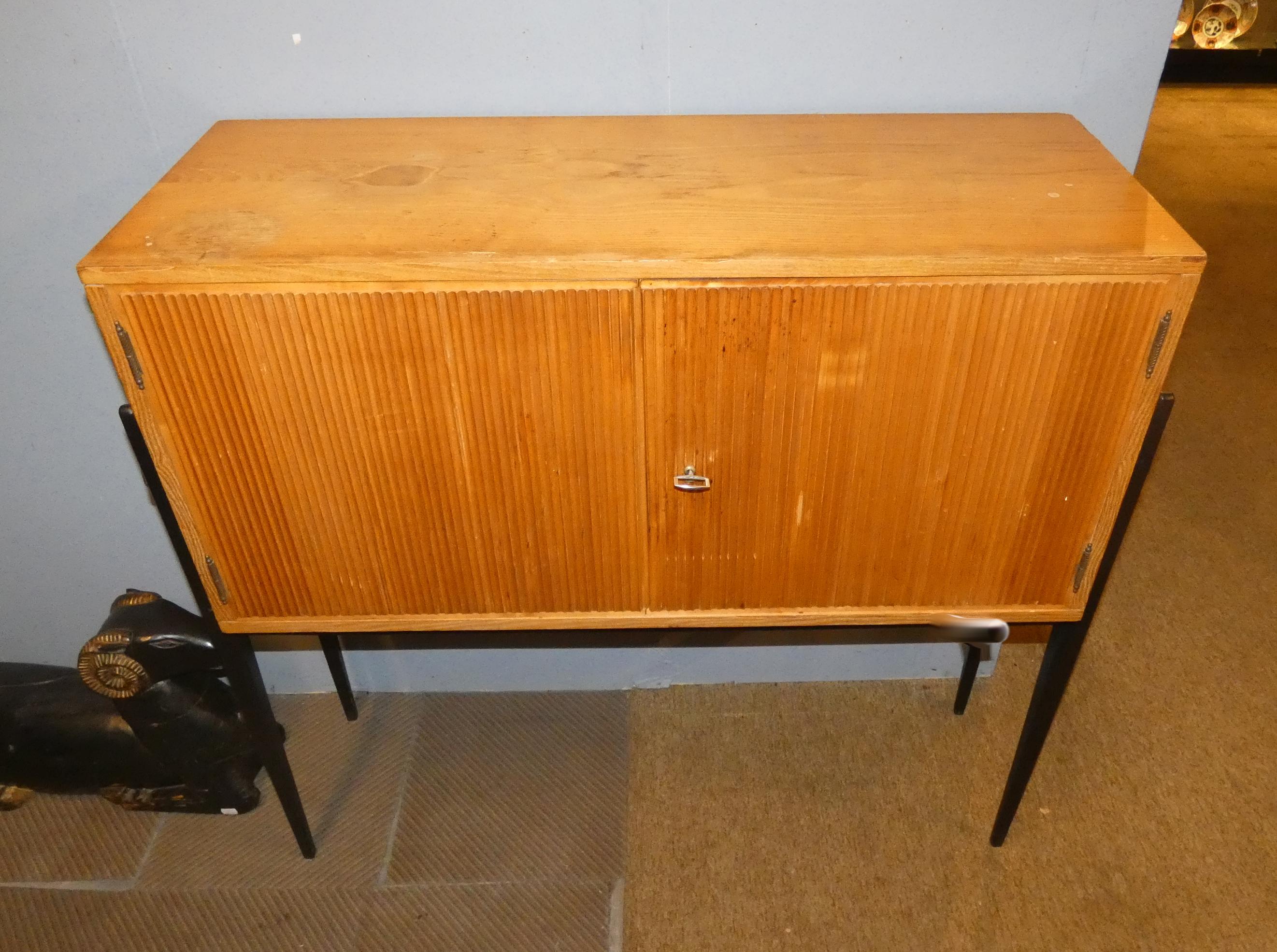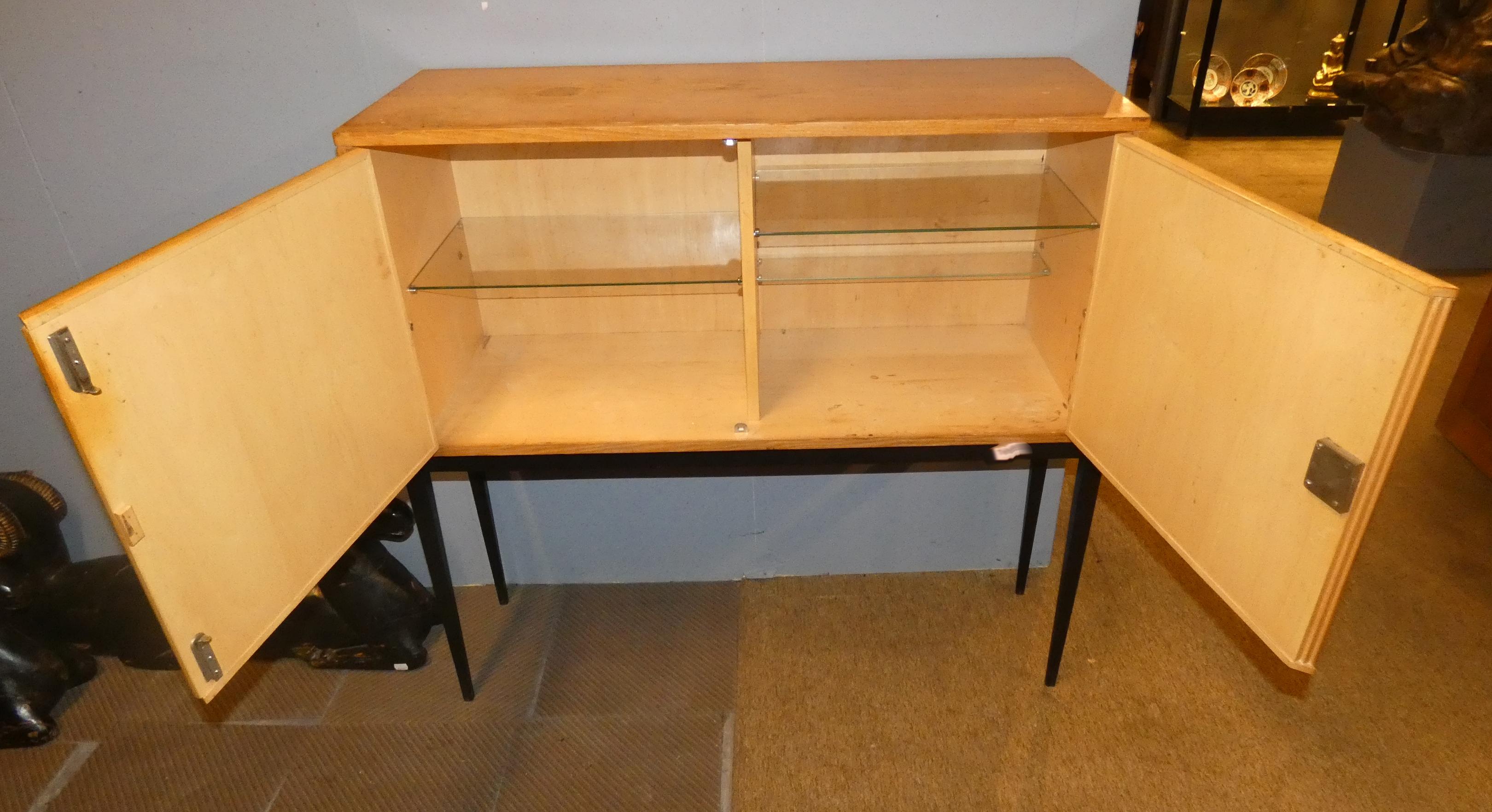 Meuble: Bar en bois (usure, acc) ouvrant par 2 portes intérieur vitré (ecl) dans le style de *HENDRICKX A.* (Alfred) (1931, ) 109x105x38cm