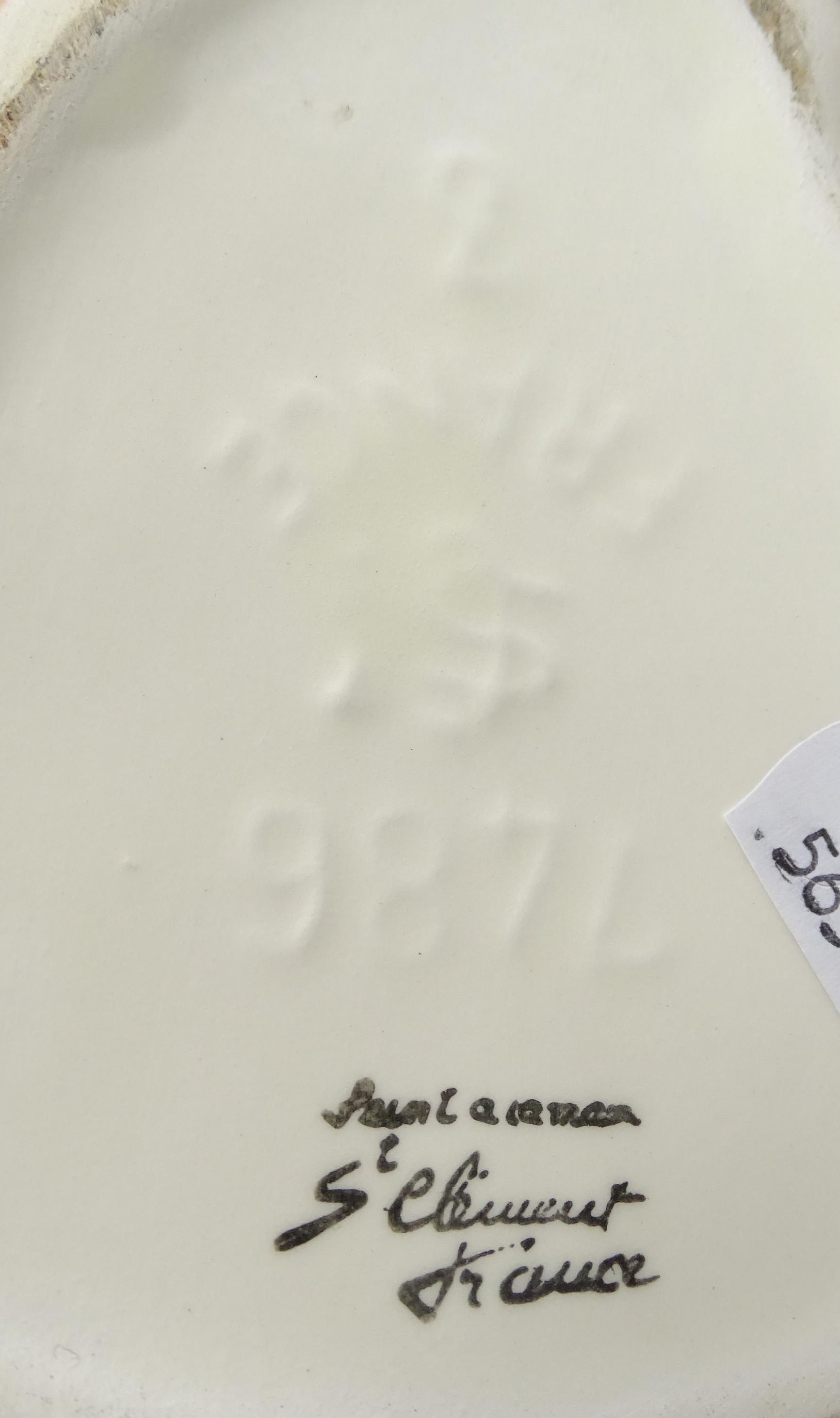 Ceramique : pichet en faience (egr) (5) : Saint Clément (2) chat + Hibou grès bleu + hibou + Cochon aubergiste attribué à Onnaing (acc)