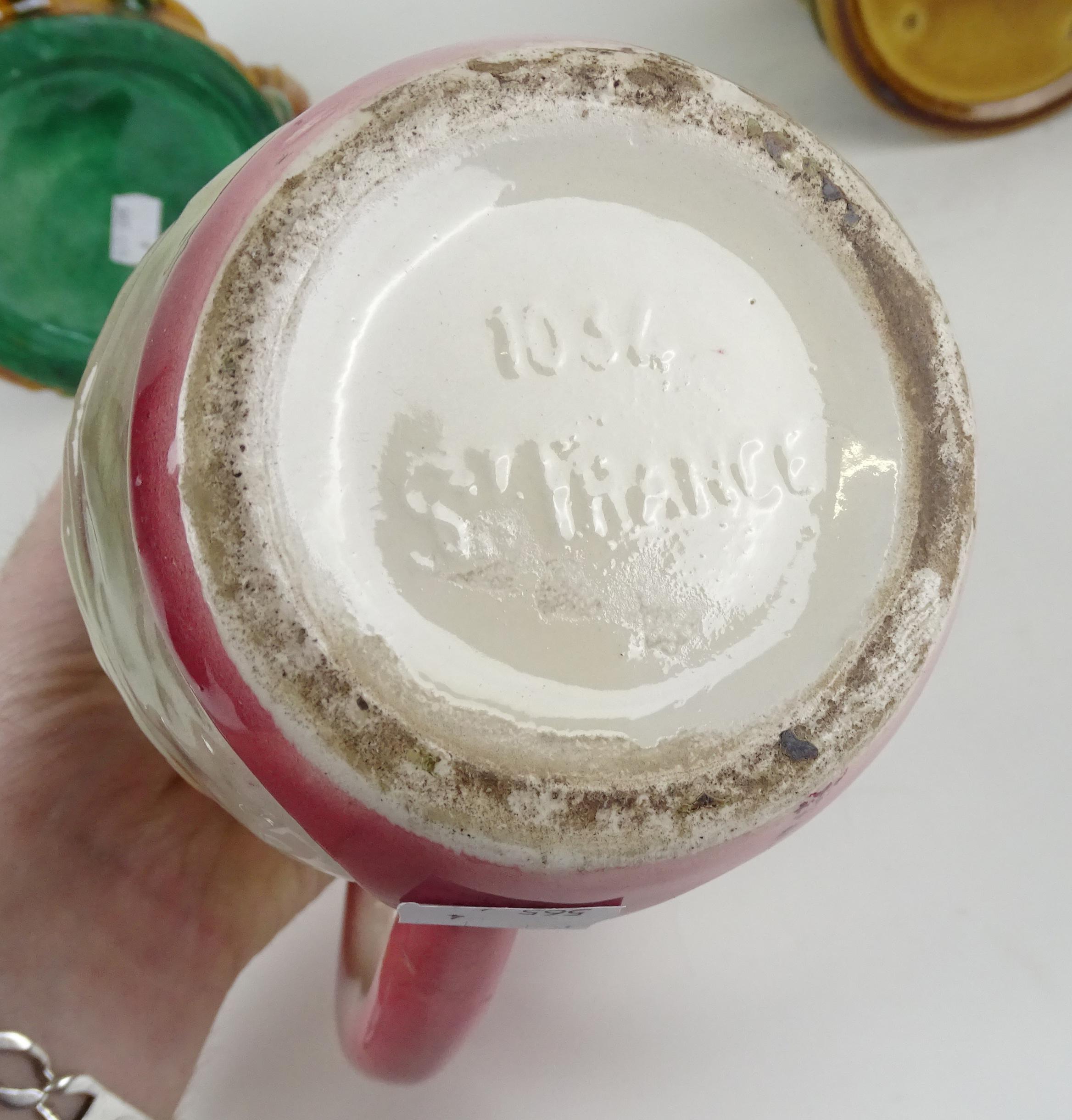 Ceramique : pichet en faience (egr) (4) : Singe Staffordshire? + Saint Clément - Mont St Michel + attribué à Minton + nimy? (cheveux)
