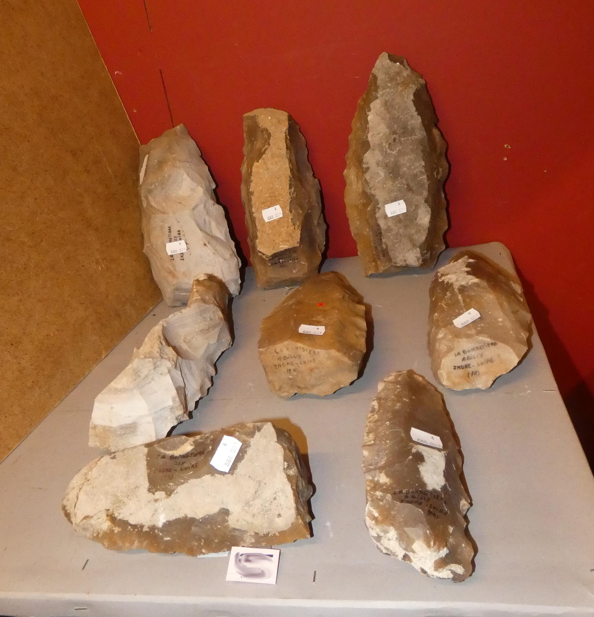 Objet: 8 Silex taillés: nucleus / livres de beurre Néolithique provenance ABILLY Indre-Loire France H:de 20cm à 29cm