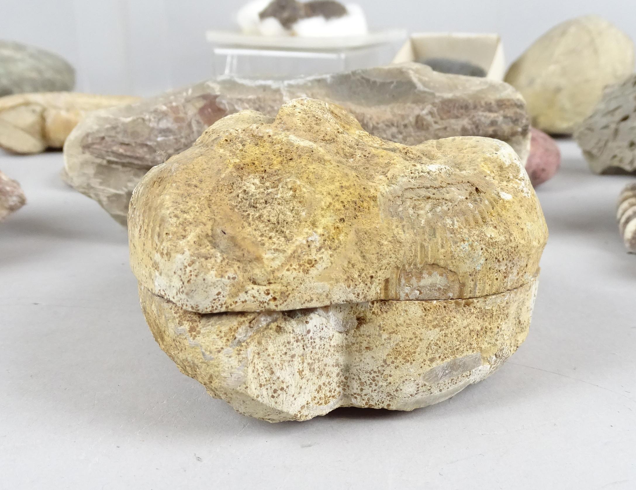 Collection: Fossiles dont trilobites, poisson, ammonite, bivalve et de coquillages dont trochus niloticus, laevistrombus canarium, turbo marmoratus, cypraea tigris