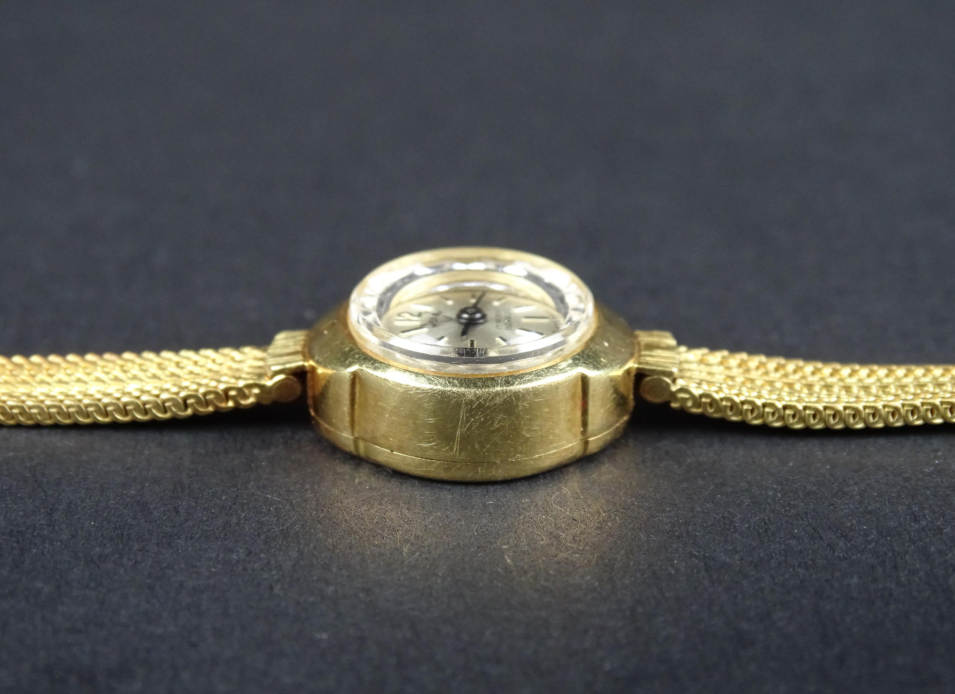 Bijou: Montre bracelet de dame HELBI en or jaune 18K mouvement à remontoir (en état) Pbrut: 17,9g D: 8mm L: 17,5cm