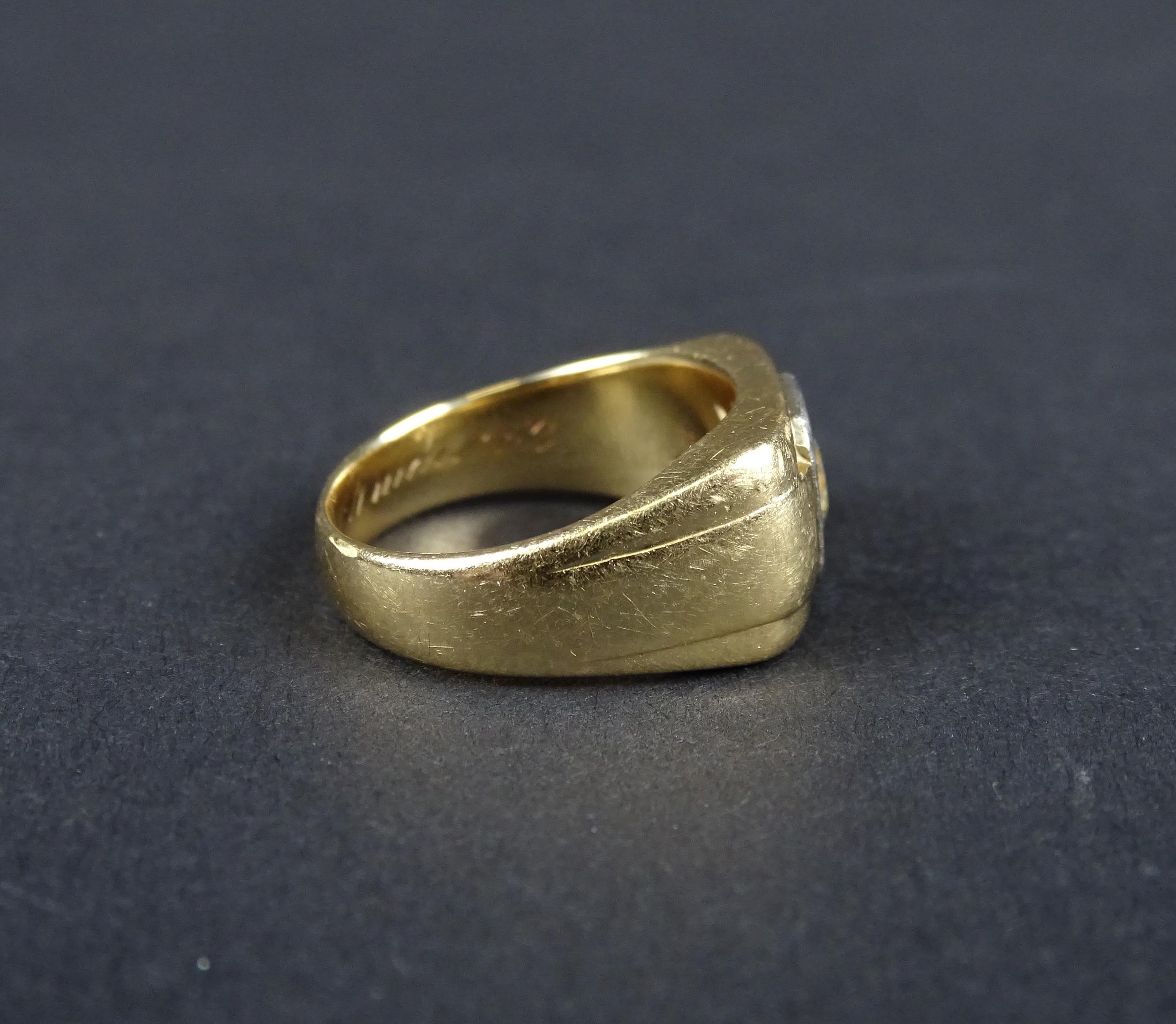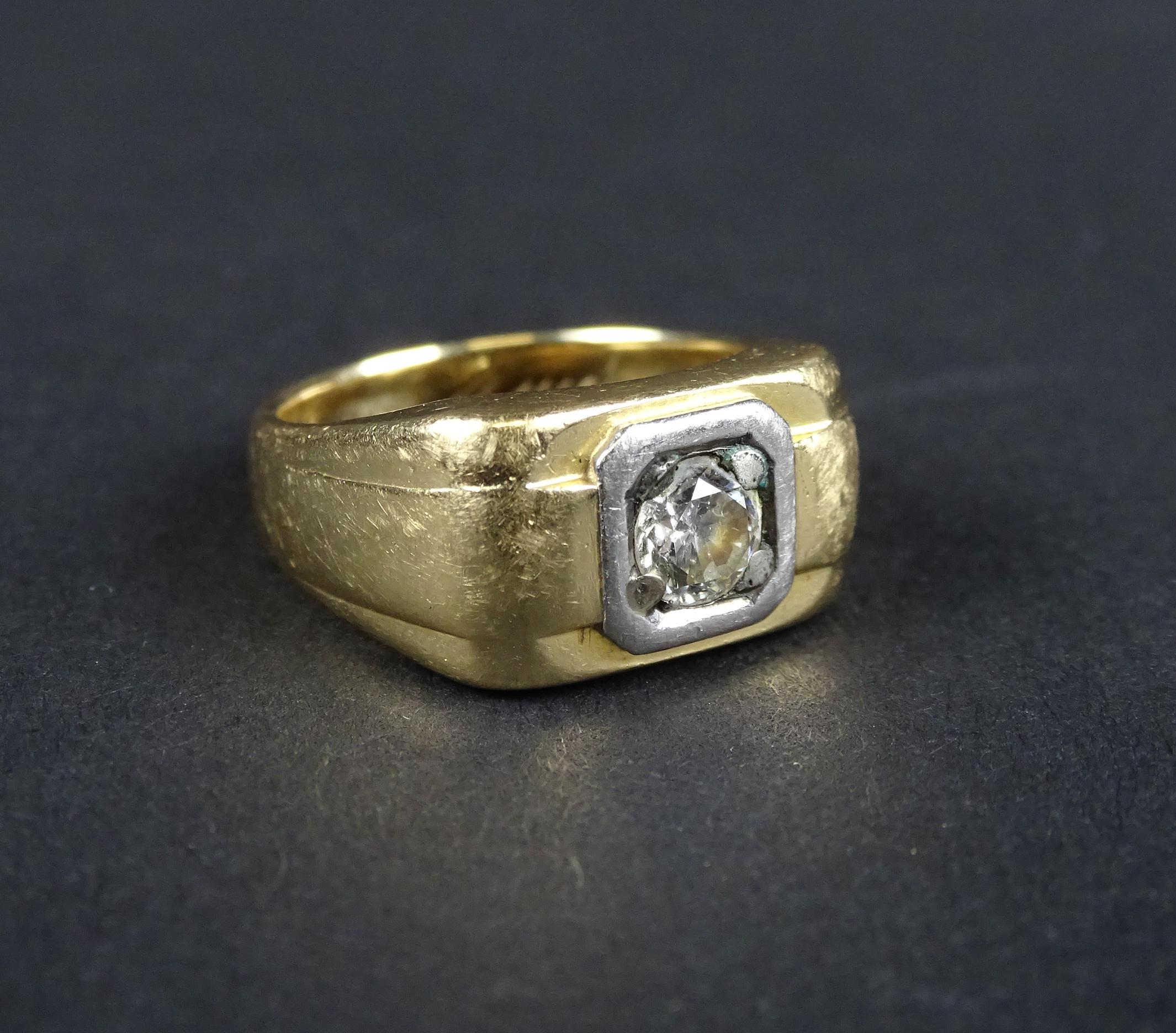 Bijou: Bague/chevalière en or jaune 18K sertie d 'un diamant solitaire d'env. 0,50cts P: 13,9g TDD: 54-55