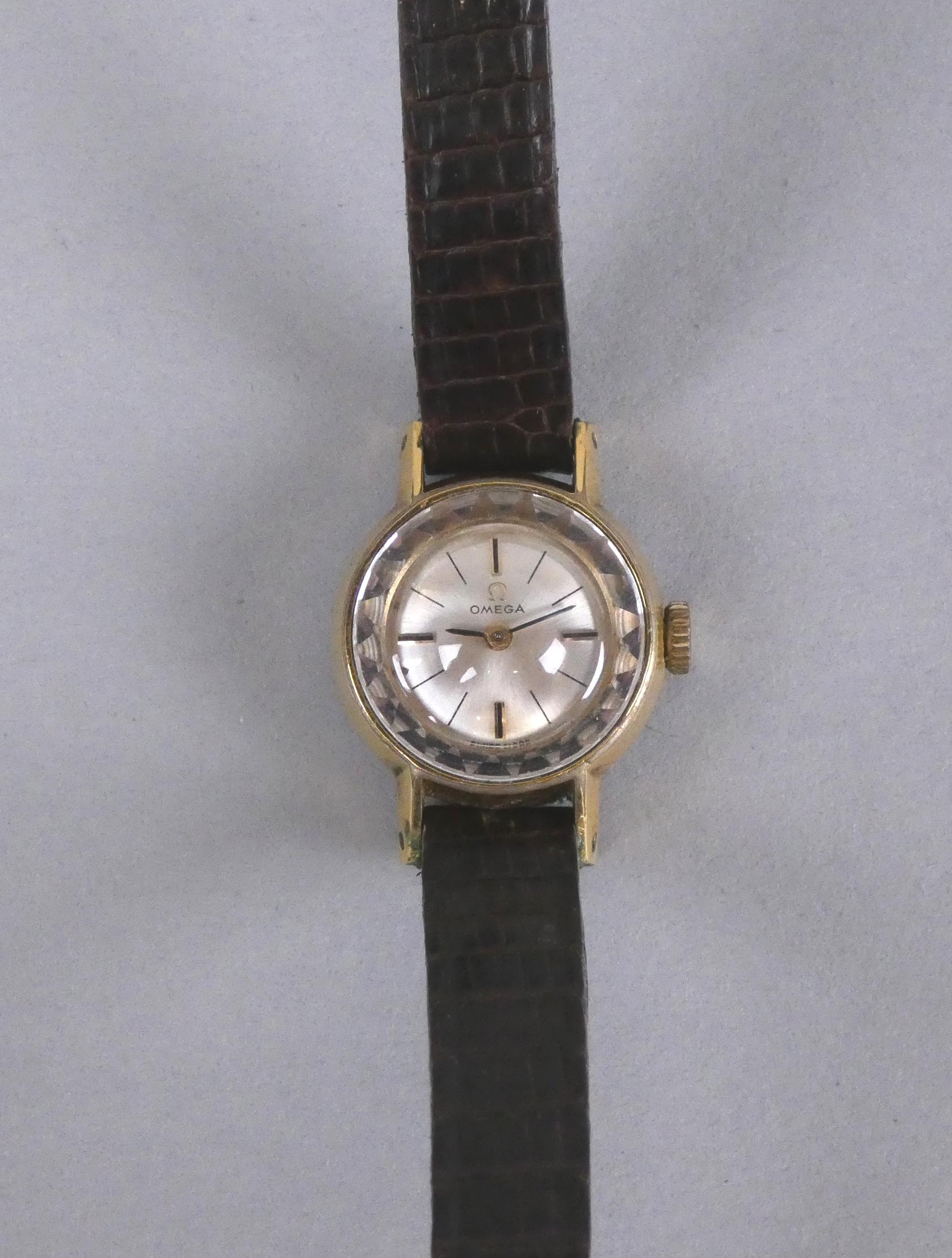 Bijou: Montre bracelet de dame OMEGA métal doré ciselé mvt à remontoir (En état) fond acier D: 18mm bracelet usures