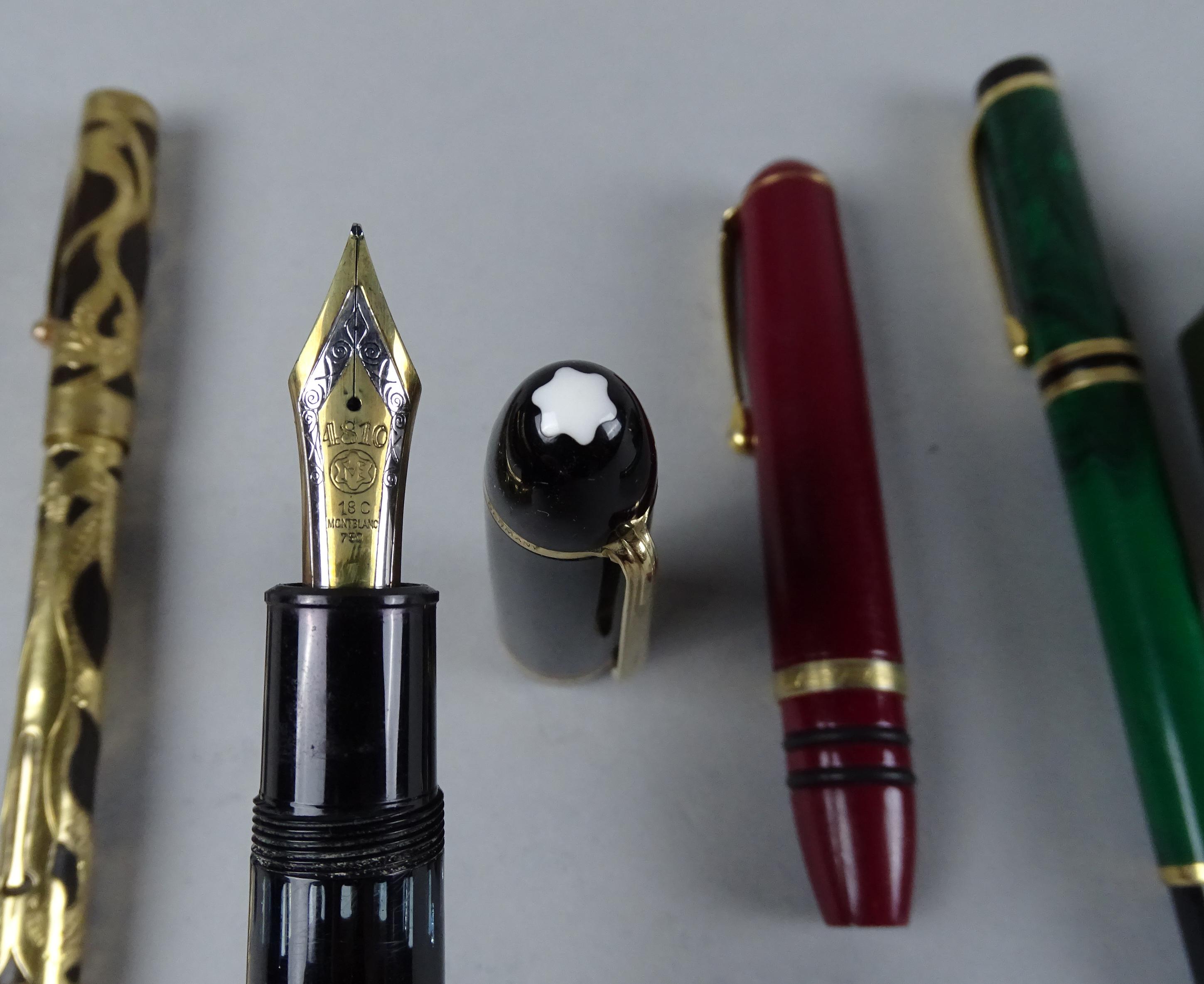 Collection: stylo plume (6) dont LAMY plume en or 14K, MONTBLANC (ds l'état) plume en or 18K, SHEAFFER'S, CENTROPEN Barclay en argent 900