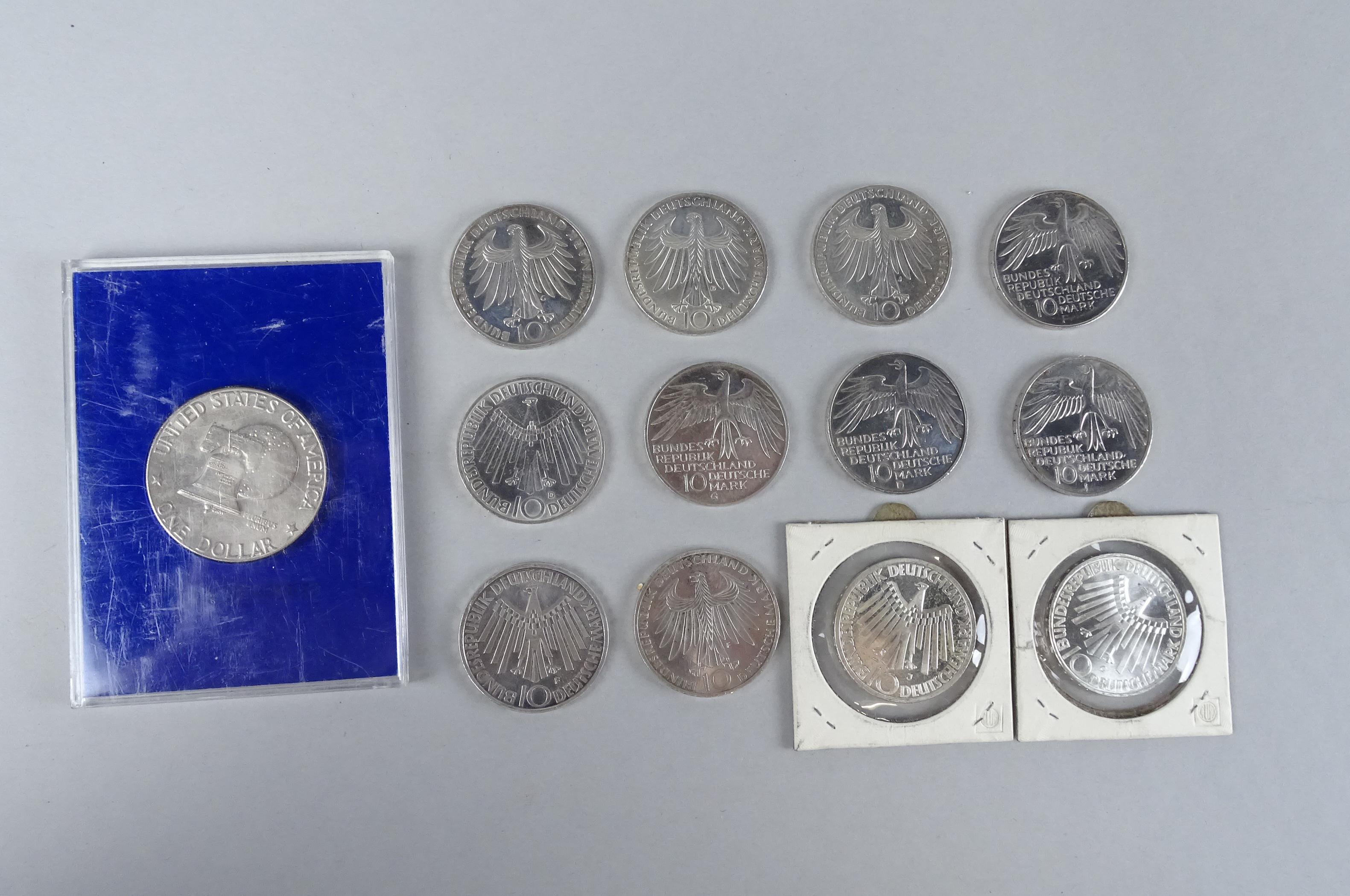 Collection : Pièces de monnaie : petit lot en argent + 1 Dollar 1776 - 1976