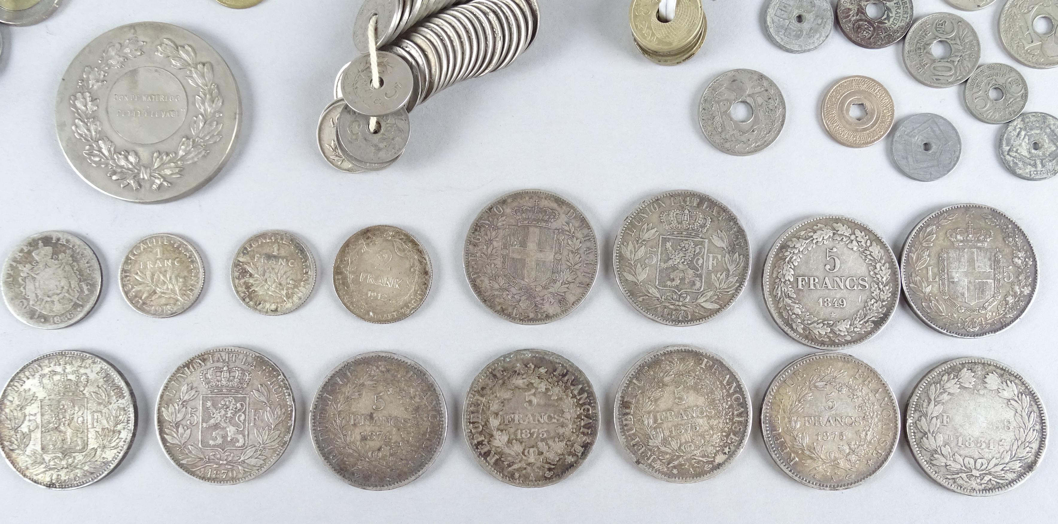 Collection: pièces de monnaie: beau petit lot dont 397g d'argent pur, ll y a de très belles pièces de 5FB 5FF et 5 lires, le reste est du kilo (peu d'euros et de dollars)